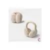 Sevimli Ayıcıklı Yumuşak Peluş Bere Boyunluklu Şapka Atkı Bir Arada Bej 3-12 Yaş Kışlık Hediyelik