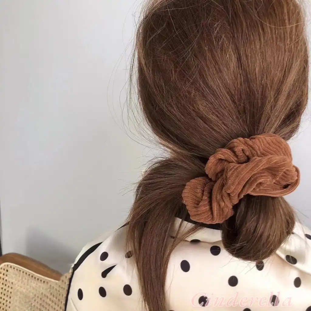Pamuklu Yumuşak Kumaş Kadın Büyük Scrunchie Toka Açık Kahve - Rahat Simit Lastik Saç Tokası