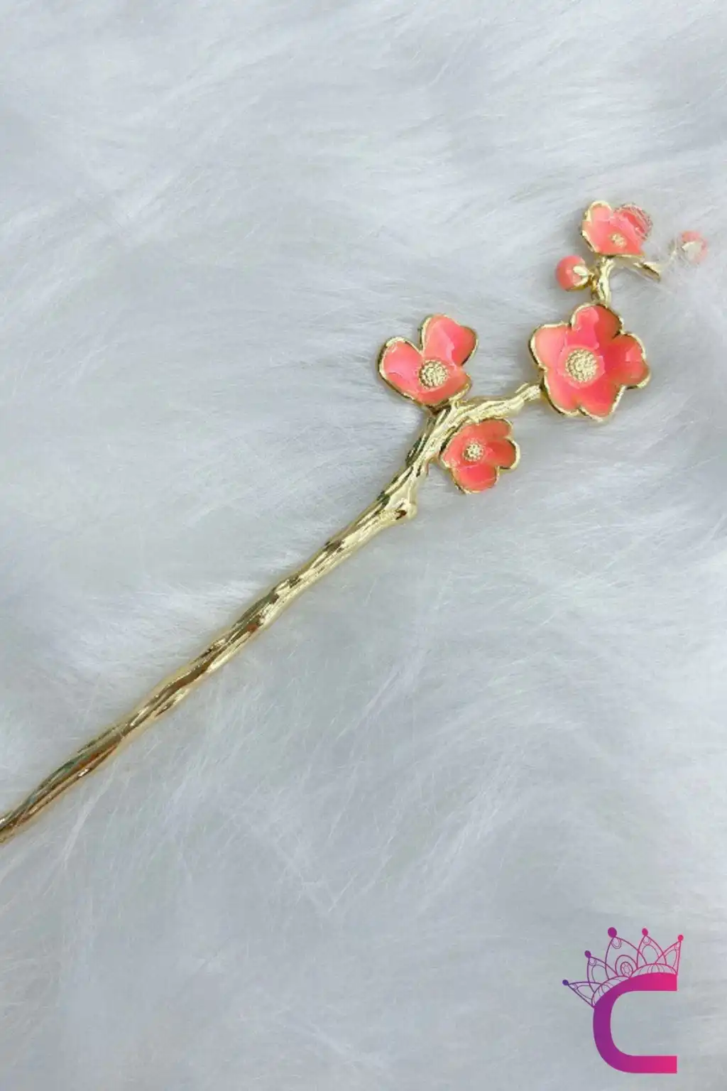- Zarif pembe çiçek tomurcuk tasarımı ile dikkat çeken bu Japon topuz çubuğu, saç stilinize romantik bir dokunuş katıyor.
