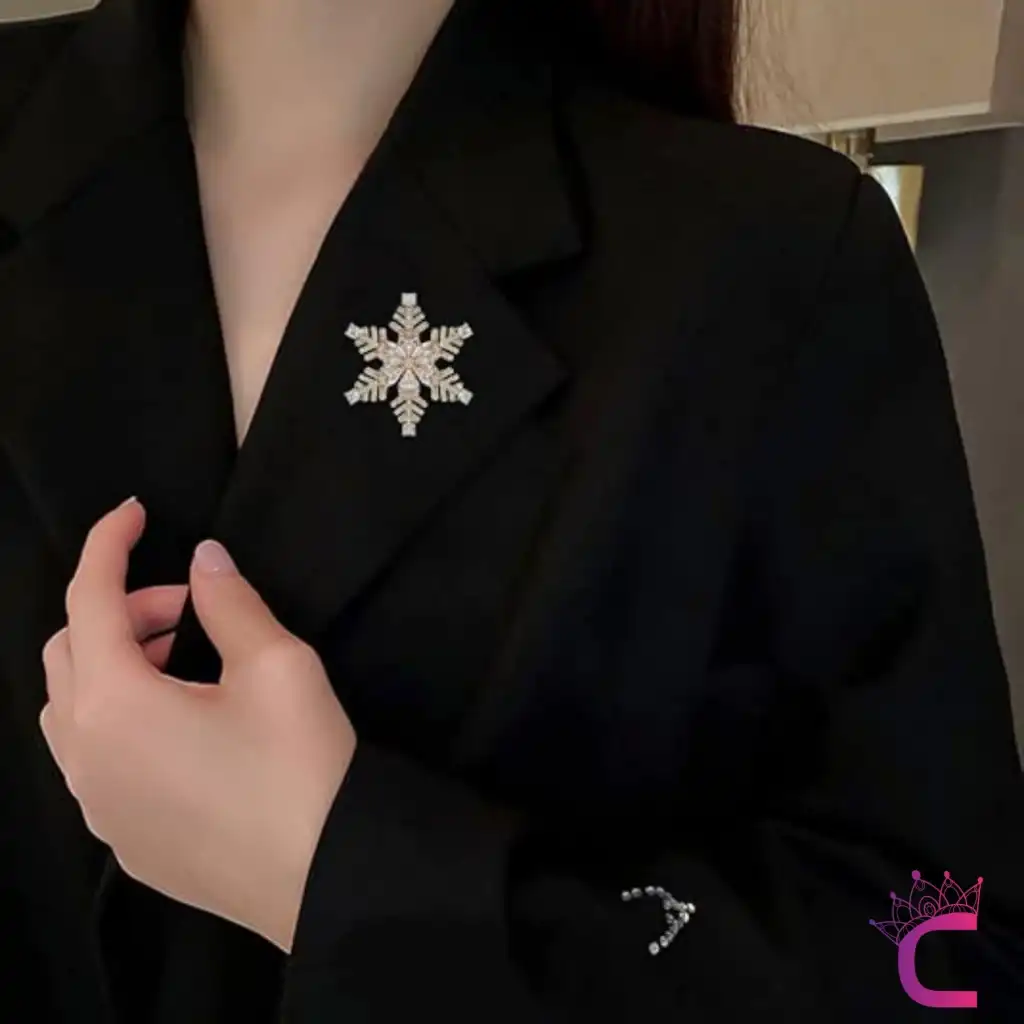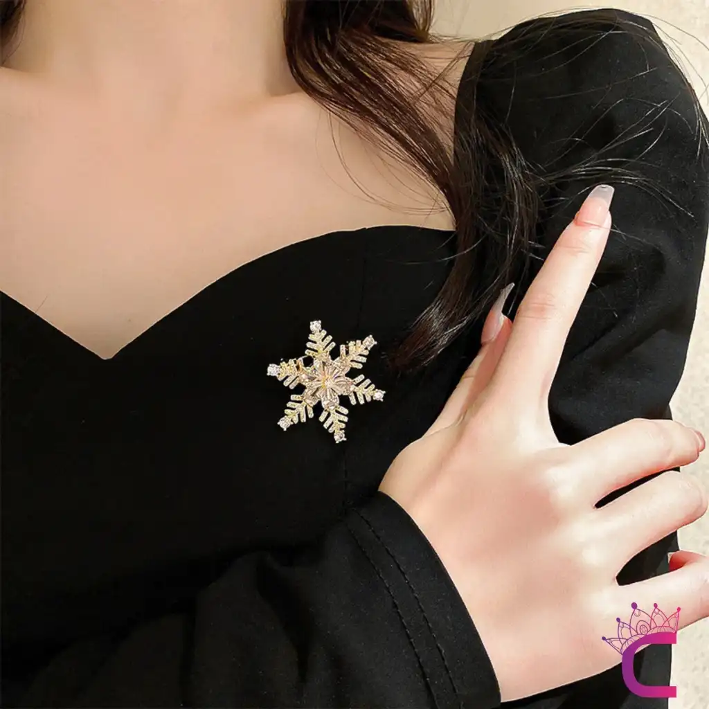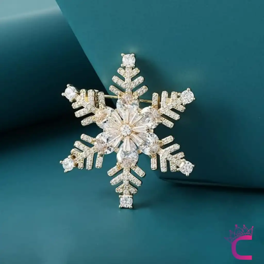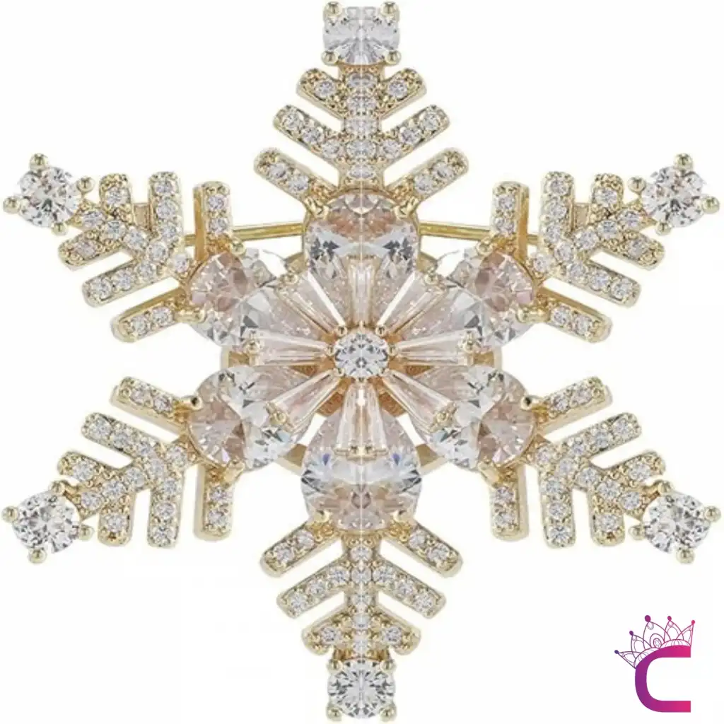 Premium Kar Tanesi Taşlı Kadın Broş Gold - Özel Hediyelik Yılbaşı Doğum Günü Hediyesi Yaka İğnesi