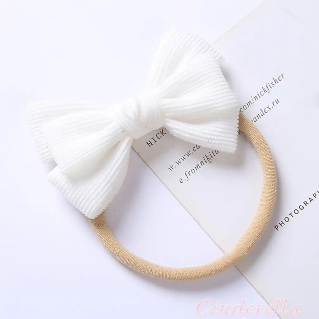 Yumuşak Rahat Çizgili Fiyonklu Bebek Bandana Beyaz - Kız Çocuk Kurdeleli Yenidoğan Saç Bandanası