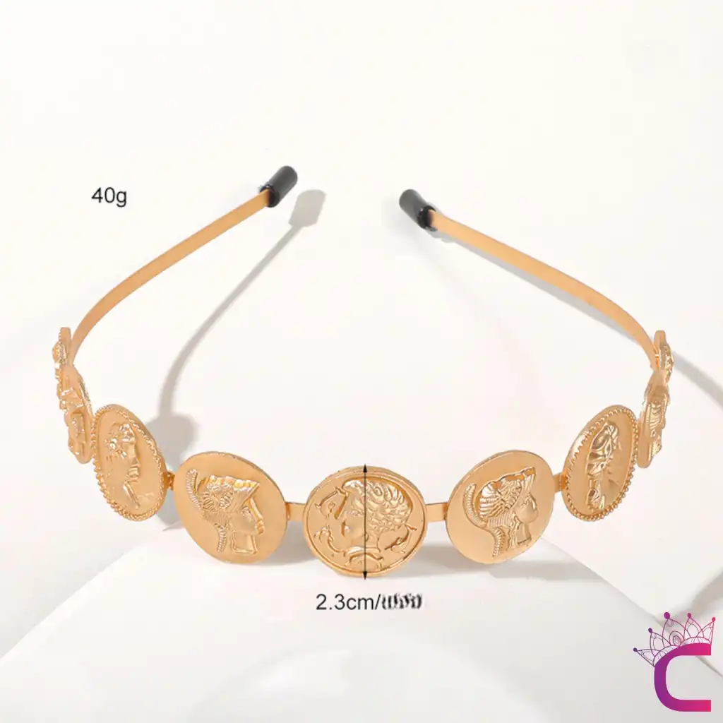 Relief Icon Figürlü Kadın Saç Tacı Gold Renk - Zarif Kadın Taç Saç Bandı