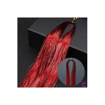 Kırmızı Gold Kılıç Tasarım Siyah Püsküllü Metal Topuz Toka 20cm - Kadın Firkete Çubuk Topuz Tokası