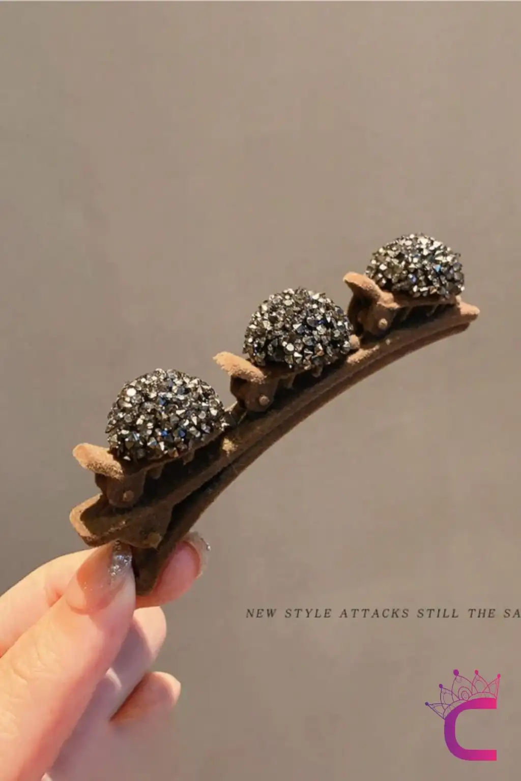 Saç Bükücü Kadife Dokulu Yan Saç Tokası Kahve - Mini Taşlı Yumuşak Klips Pens Toka Saç Aksesuarı