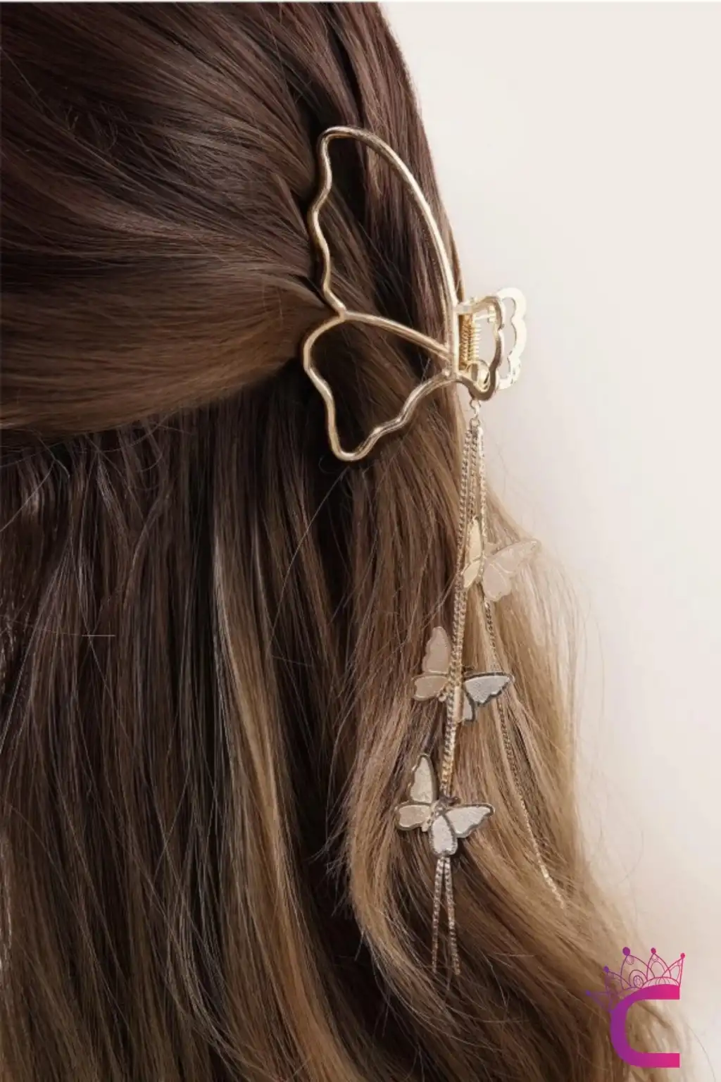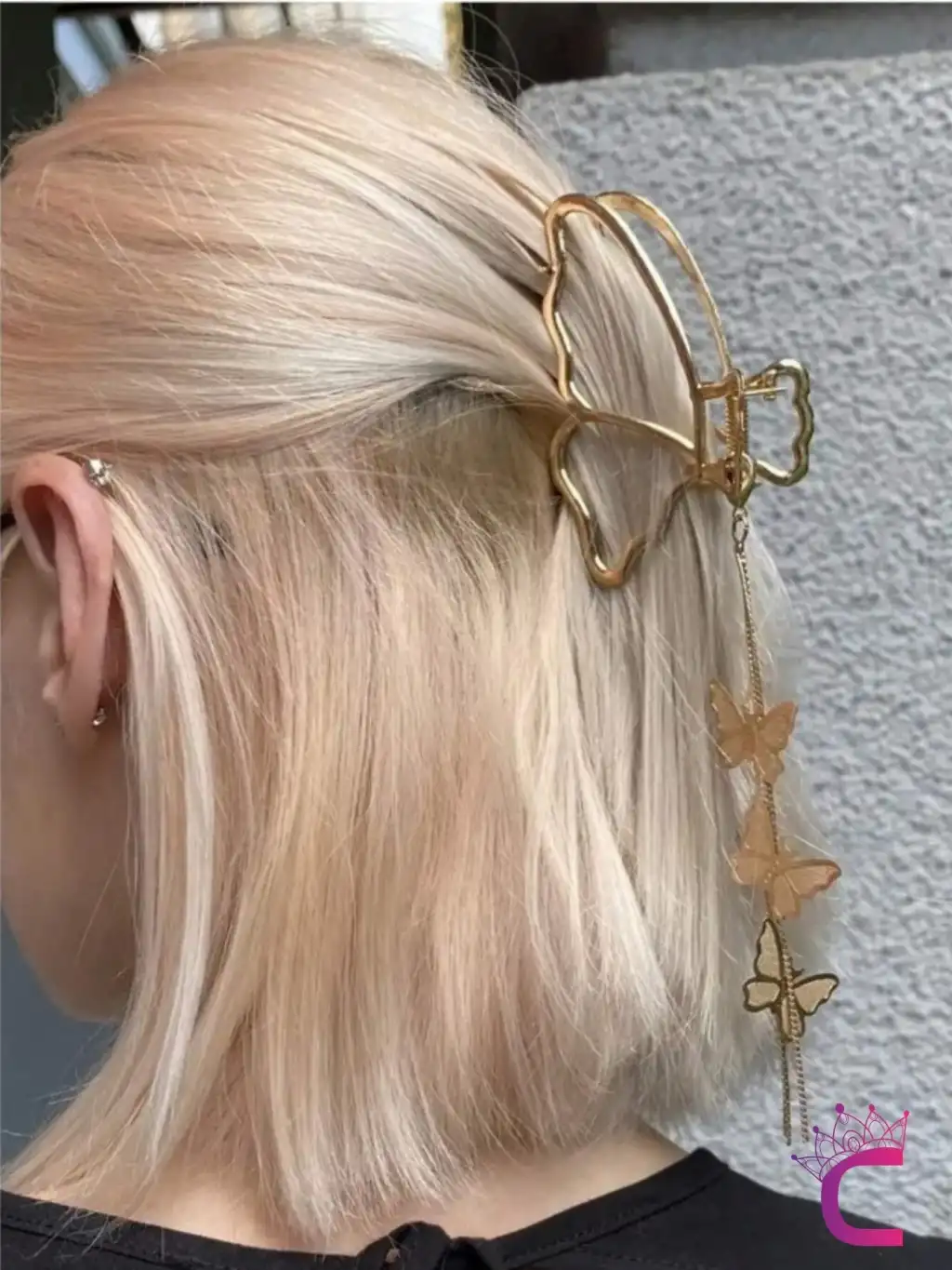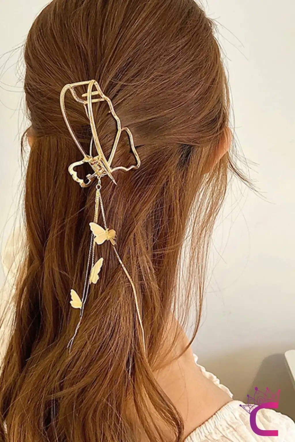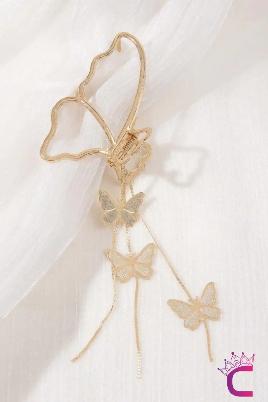 Sallantılı Kelebekli Orta Boy Kadın Metal Mandal Toka 8cm - Zarif ve Şık Mandallı Saç Topuz Tokası