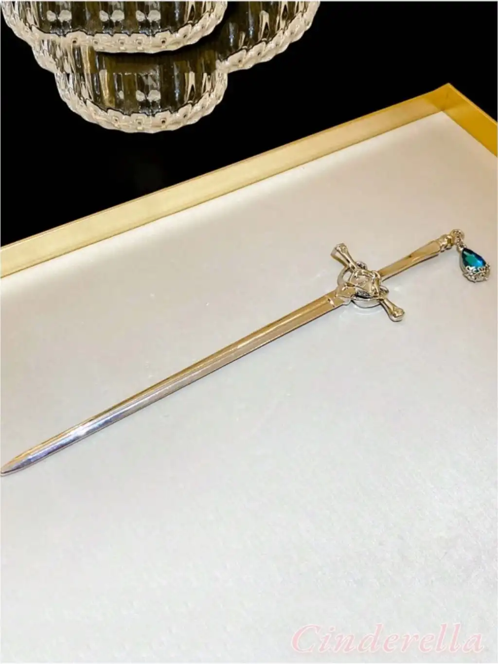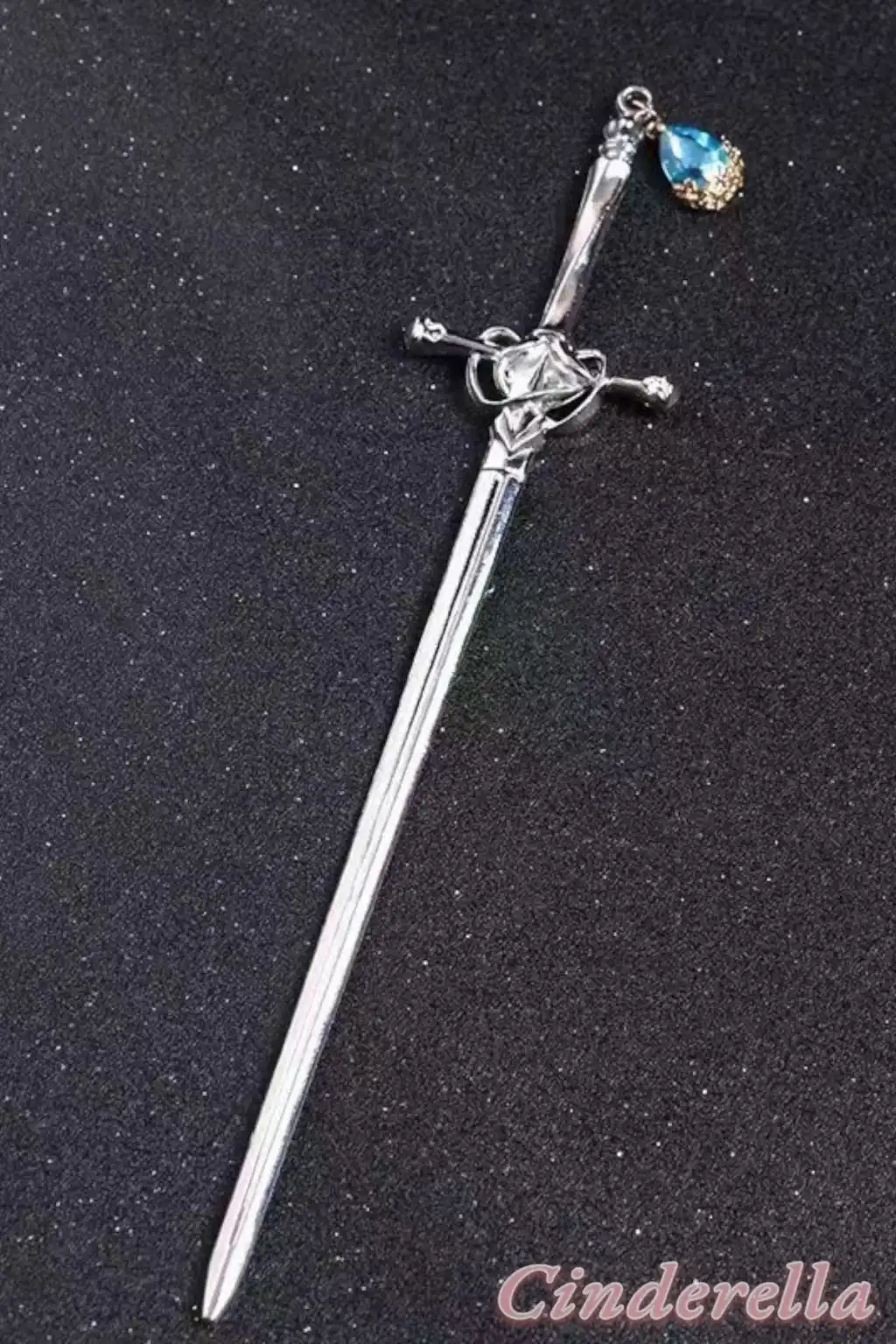 Sallantılı Mavi Yapay Elmaslı Kılıç Tasarım Metal Topuz Tokası 20cm - Kadın Modern Çubuk Saç Toka