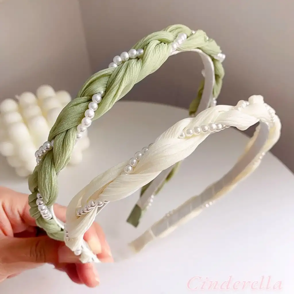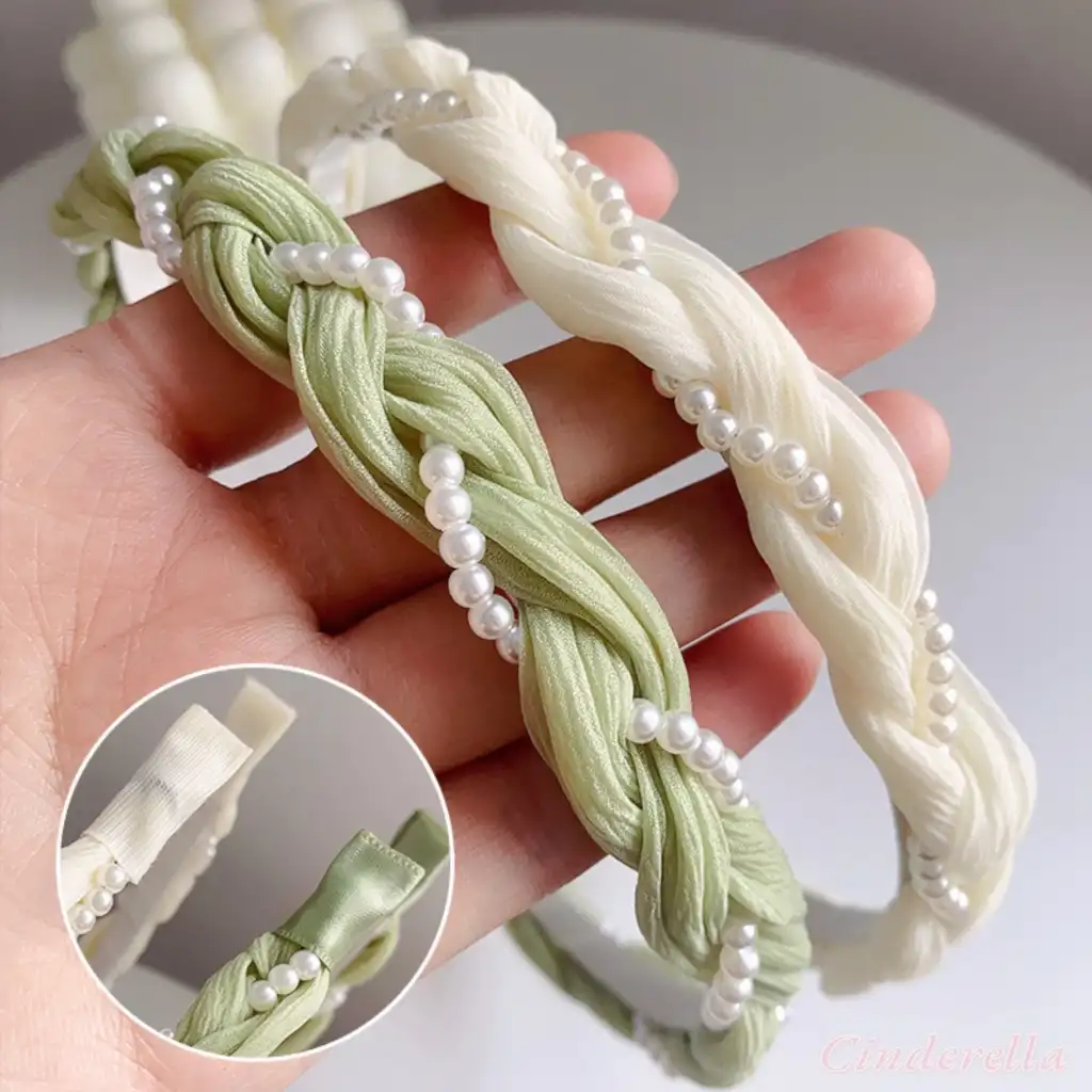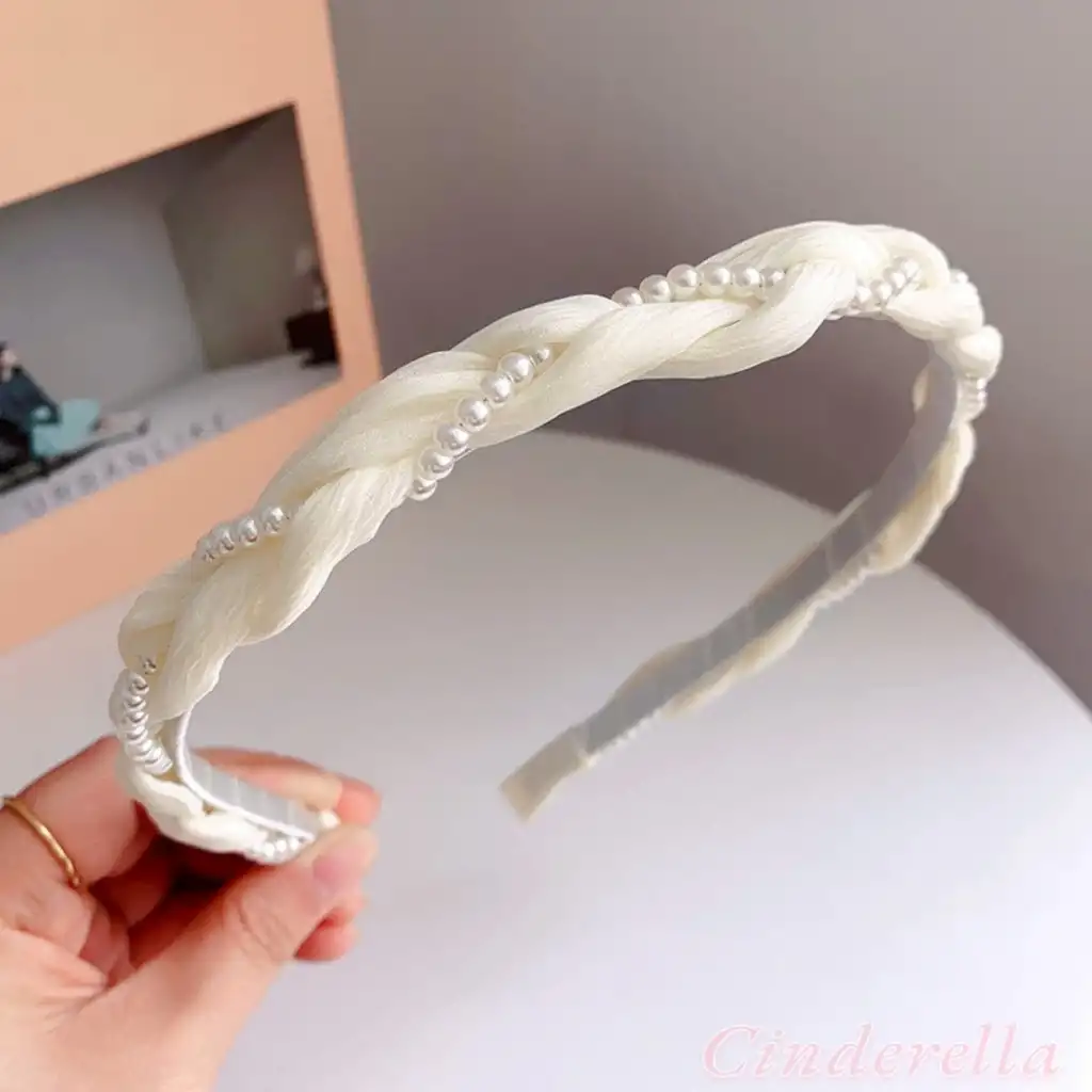 Sarmaşık İnci Tasarım Yumuşak Kadın Tacı Krem - İncili Hafif Esnek Taç Saç Bandı