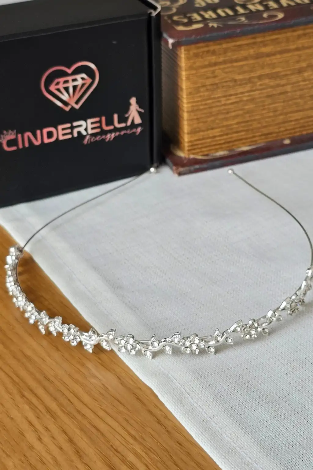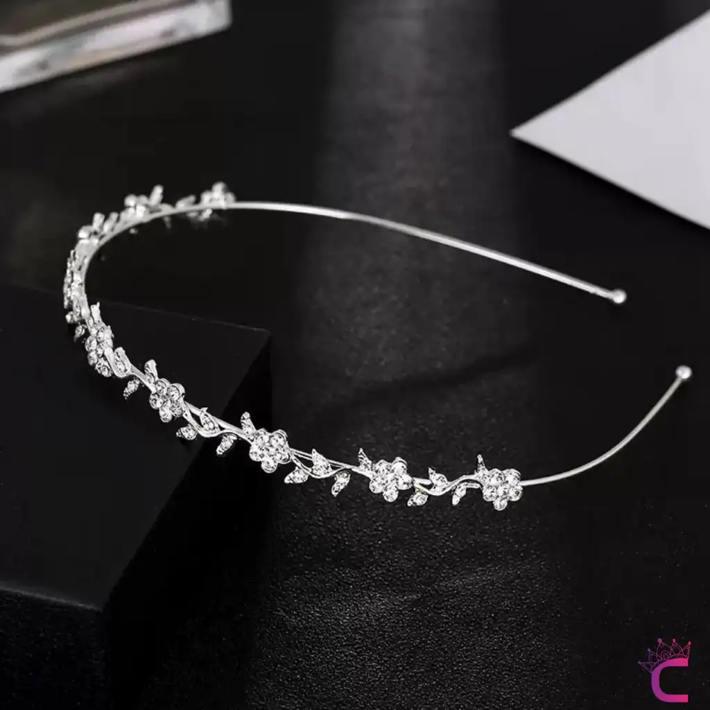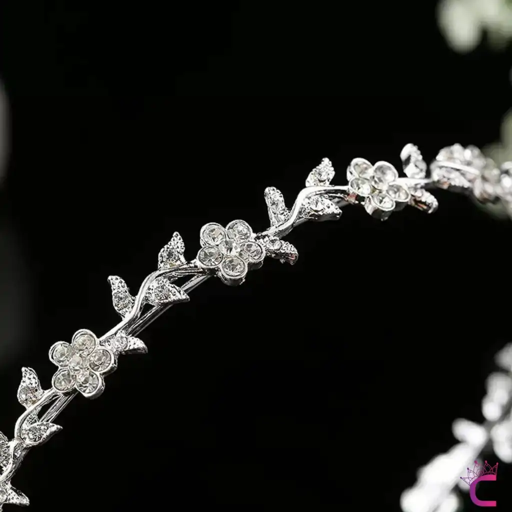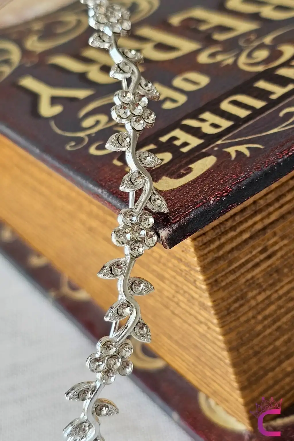 Sarmaşık Yapraklı Çiçekli Zirkon Taşlı Gelin Tacı Gümüş - Düğün Nişan Söz Doğum Günü Taç Saç Bandı