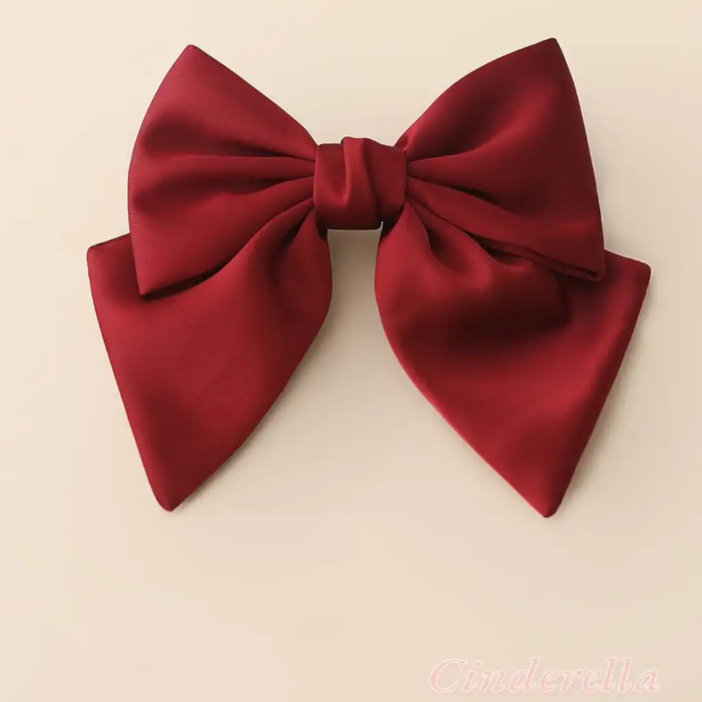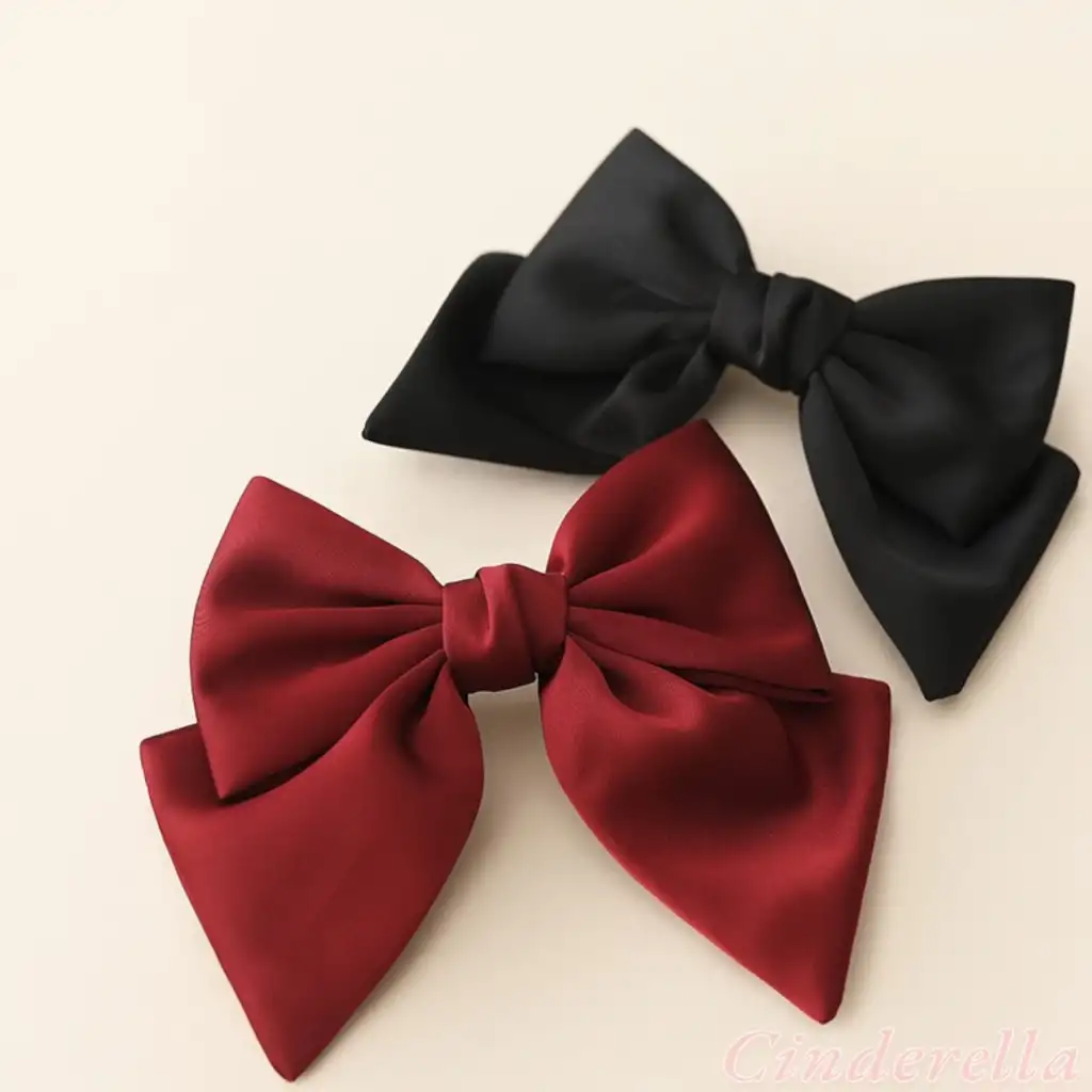 Saten Klasik Model Büyük Fiyonk Otomatik Toka Kırmızı - Zarif Fiyonklu Kurdele Kadın Saç Tokası