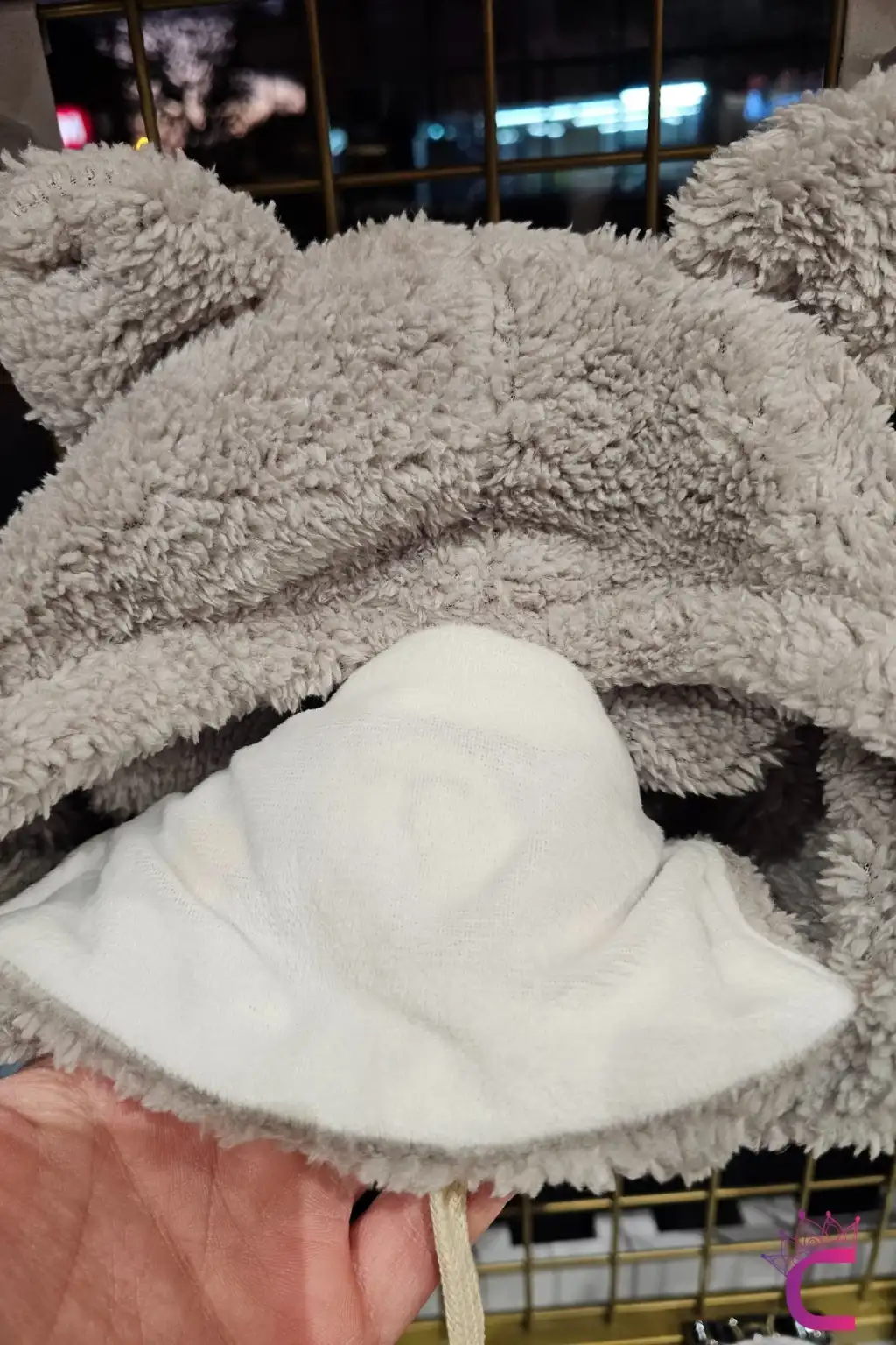 Sevimli Ayıcıklı Yumuşak Peluş Bere Boyunluklu Şapka Atkı Bir Arada Gri 3-12 Yaş Kışlık Hediyelik