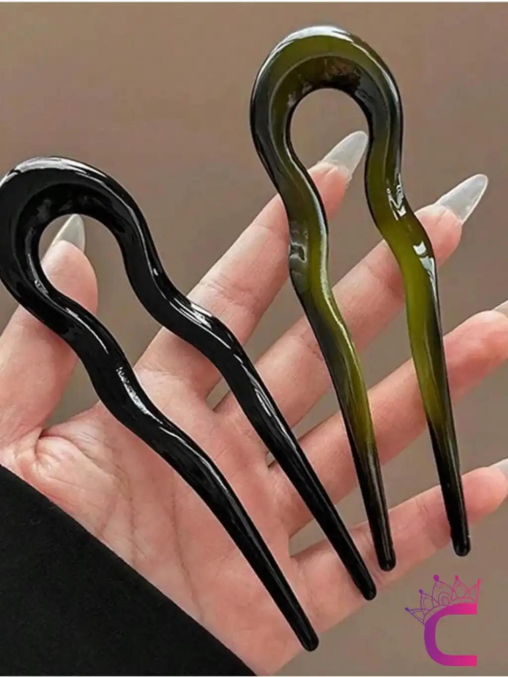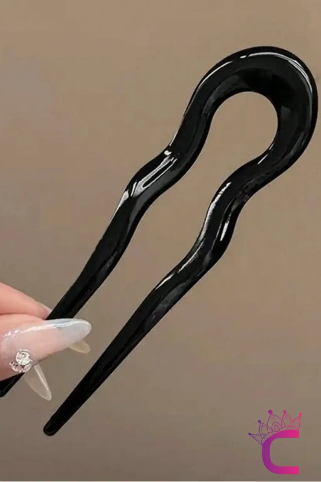 Siyah Geometrik Tasarım Asetat Kadın Saç Topuz Tokası 12.5 cm - Çubuk Toka Saç Çubuğu Aksesuar