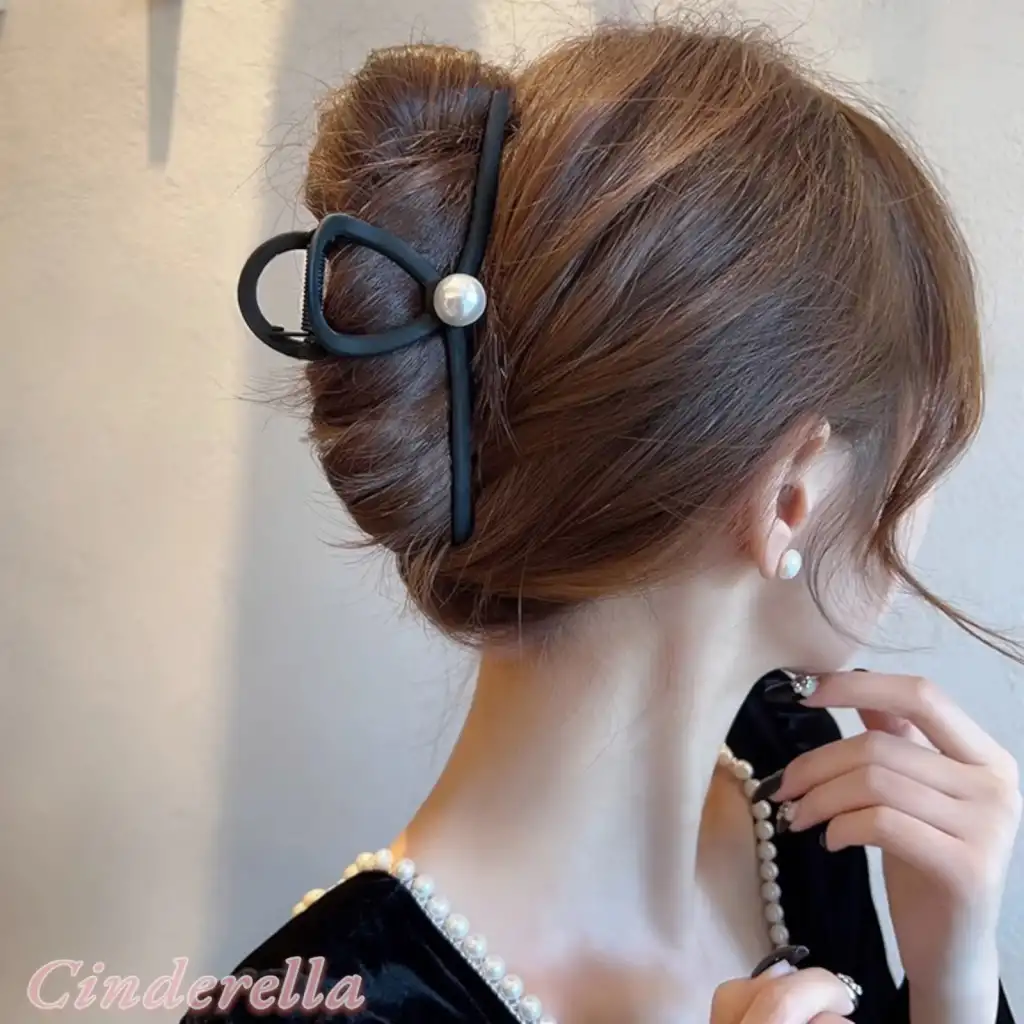 Siyah Sade ve Şık Model İncili Büyük Boy Kadın Metal Mandal Toka - Yeni Trend Mandallı Saç Tokası