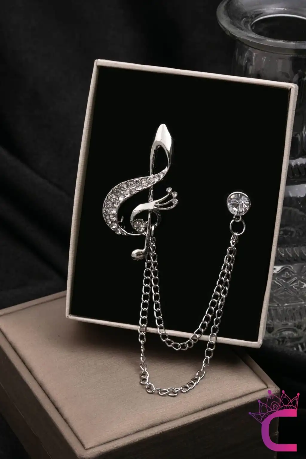 - Şık tasarımıyla dikkat çeken sol anahtar müziği, notalarla süslenmiş zirkon taşlı broş, hem öğretmenlerin hem de yetişkinlerin şıklığını tamamlıyor.