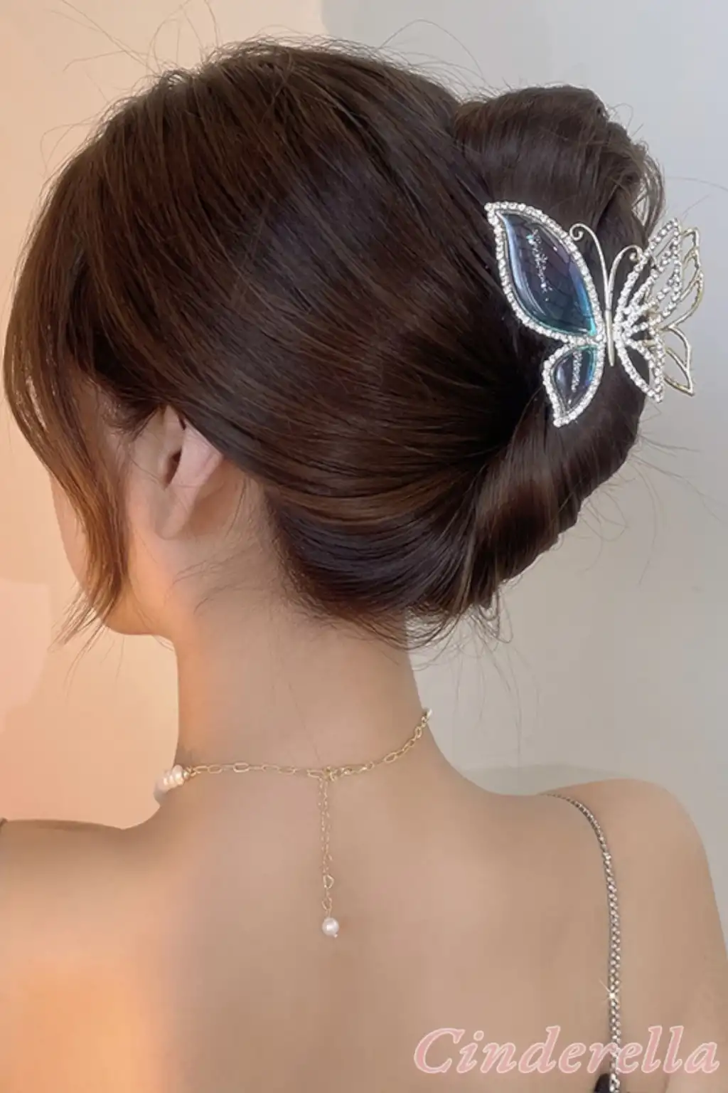 Taşlı Kelebek Kanat Dokulu Model Metal Mandal Toka Gold Renk - Trend Lüks Mandal Saç Tokası