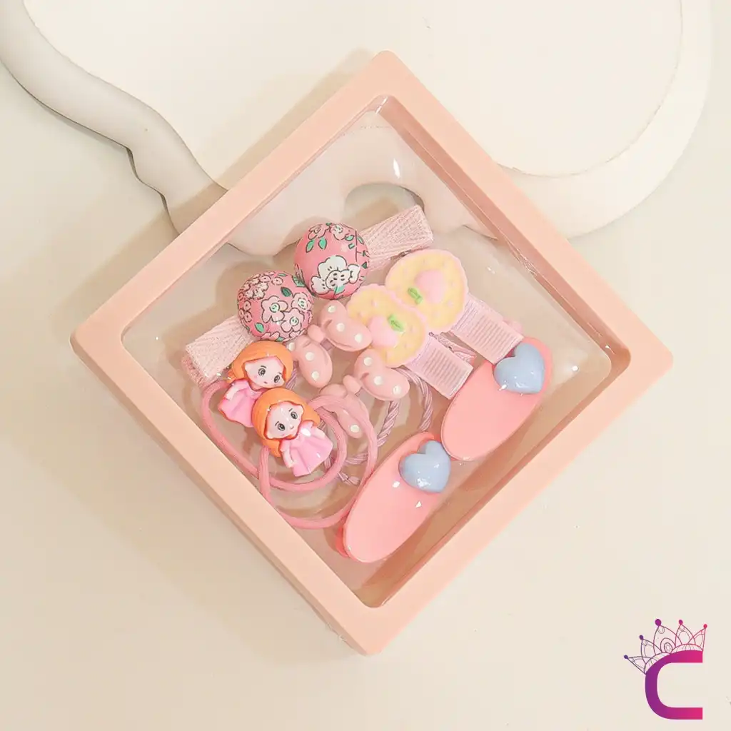 Tatlı Prenses 10'lu Özel Kutulu Hediyelik Kız Çocuk Toka Seti - Bebek Yumuşak Pens Lastik Saç Tokası