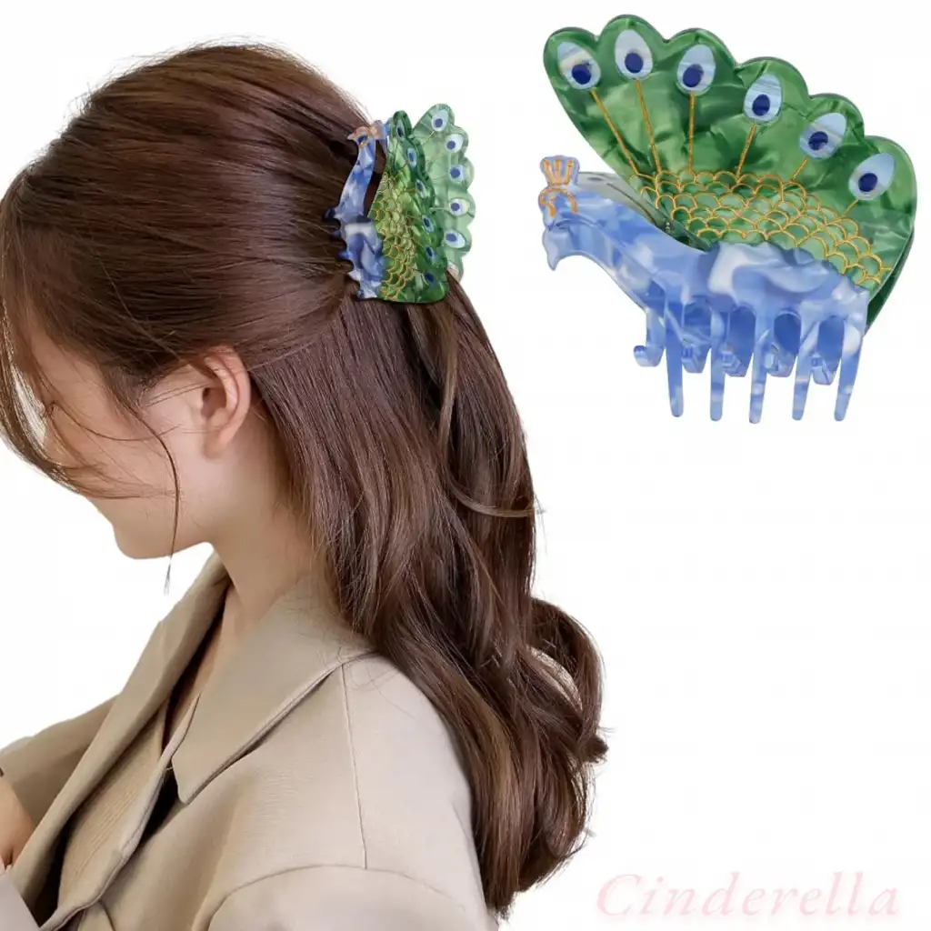 Tavus Kuşu Canlı Renkli Model Lüks Asetat Mandal Toka 8.5cm - Yeni Sezon Kadın Mandallı Saç Tokası