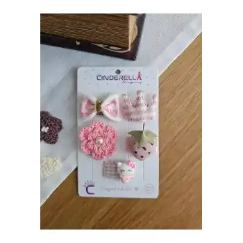 6'lı Çiçekli Kalpli Saçsız Bebek Tokası - Hediyelik Kız Bebek Az Saçlı Yenidoğan Çıtçıtlı Toka Seti