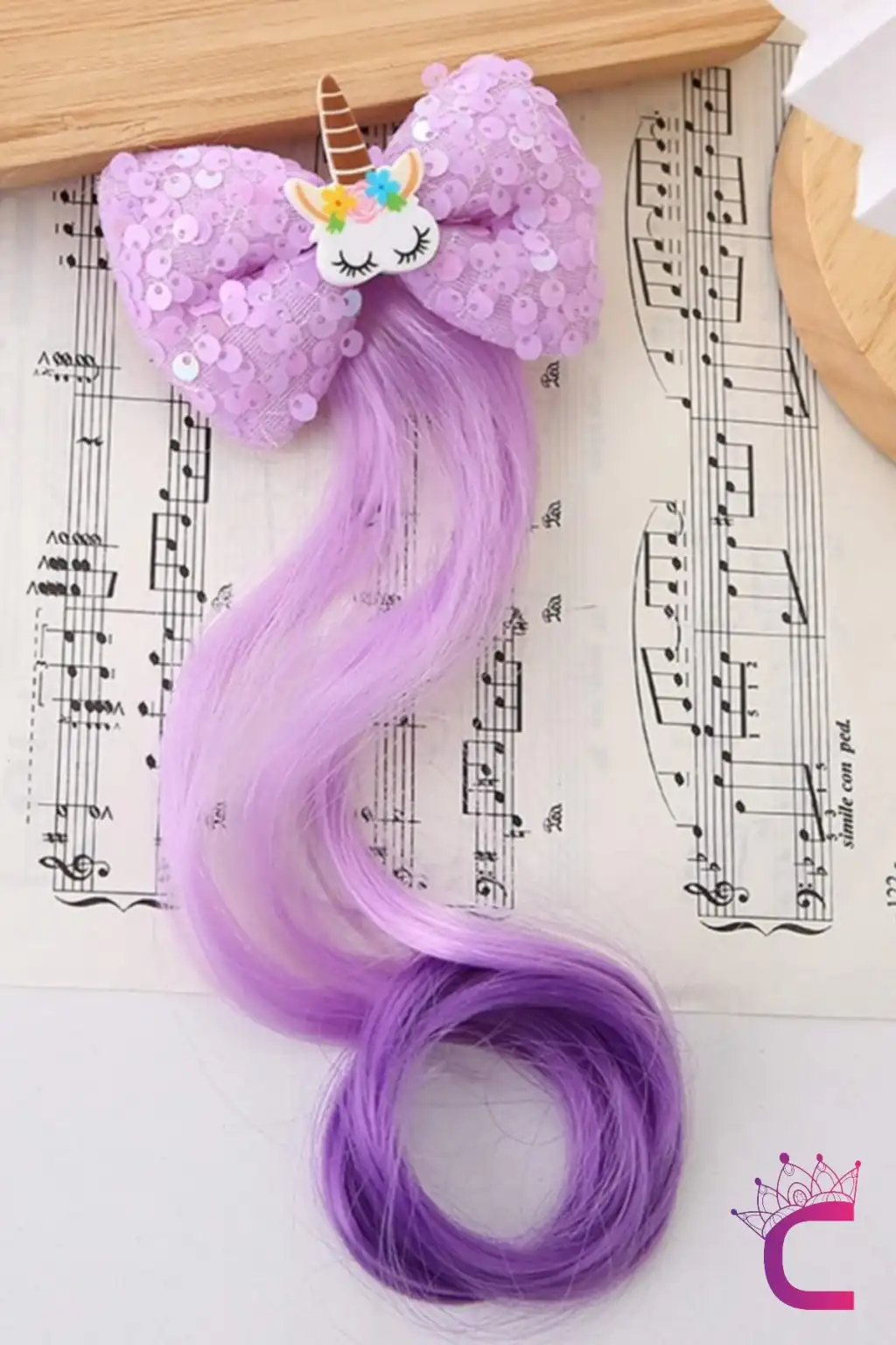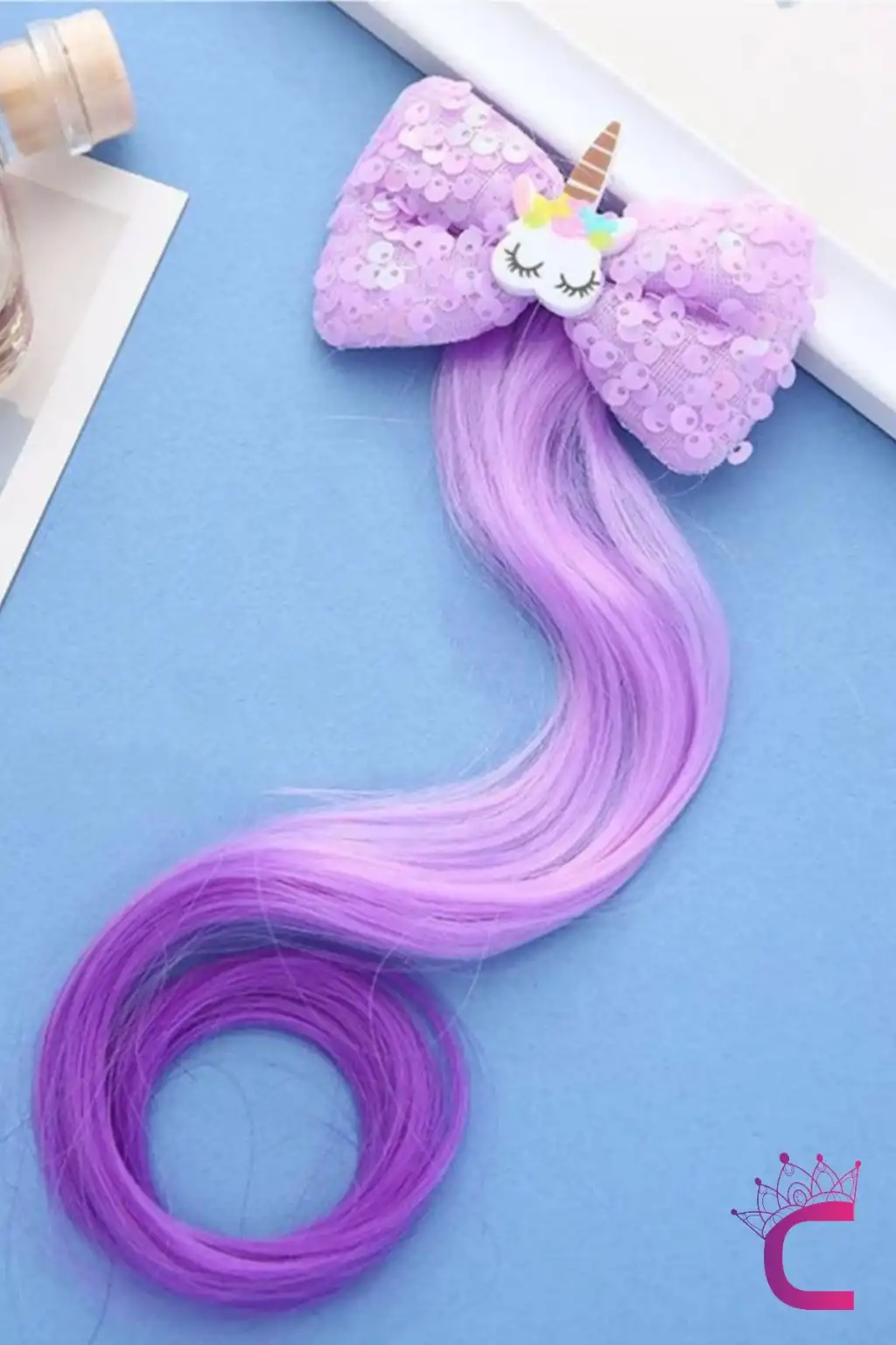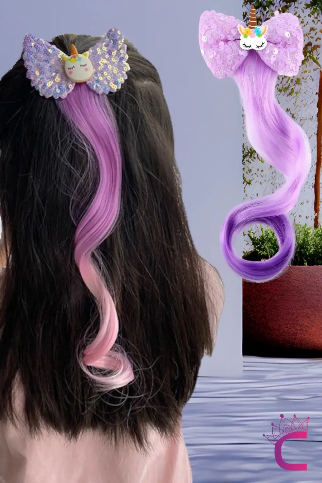 Unicorn Lila Pullu Kız Çocuk Saç Postiş Toka - Hediye Çocuk Takma Saç Aksesuar At Kuyruğu Pens Toka