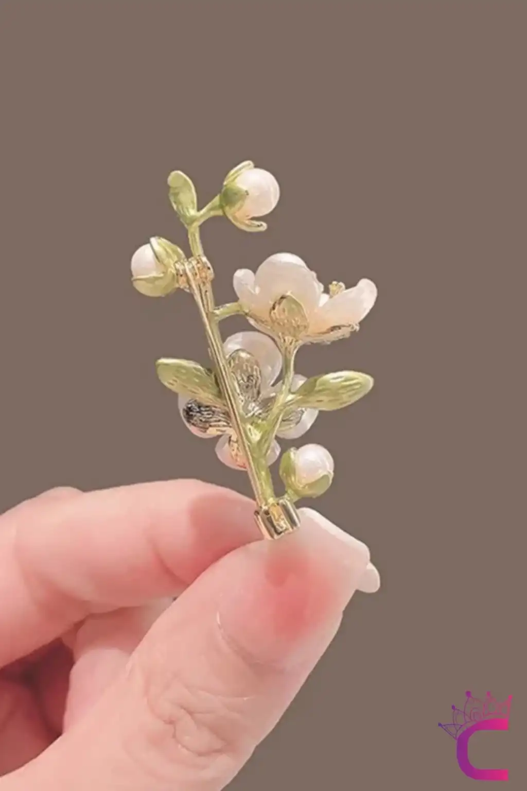 Yasemin Çiçeği Tasarım İncili Çiçekli Taşlı Kadın Broş - Hediyelik Elbise Ceket Yaka İğnesi Broşu
