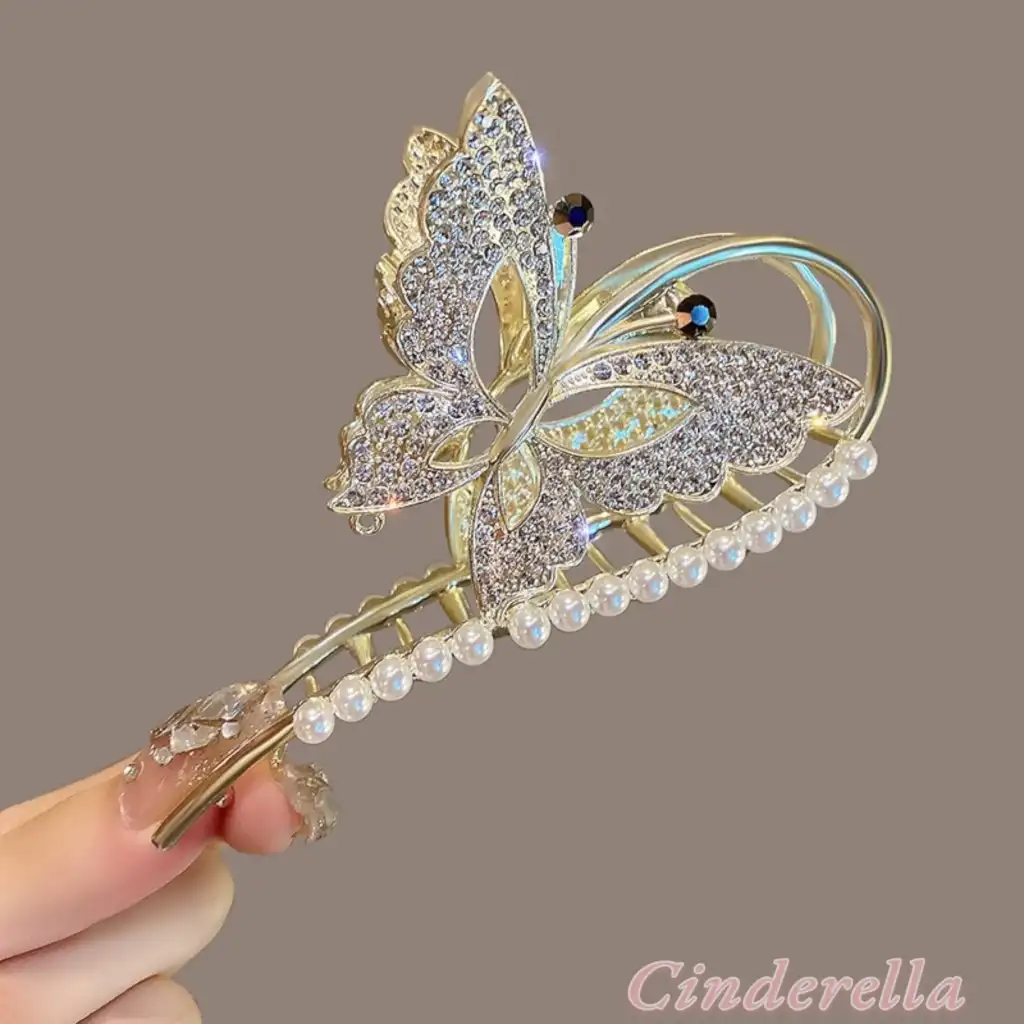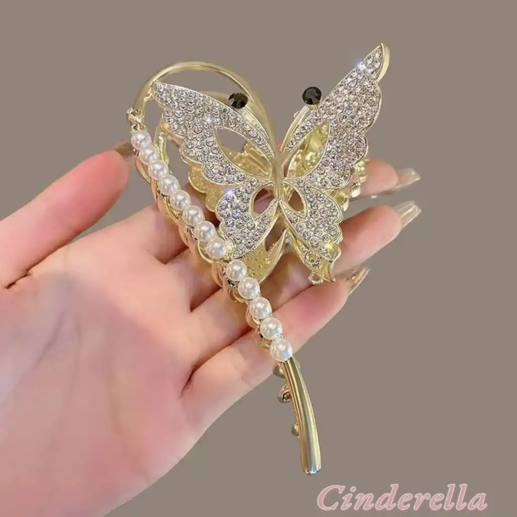 Yeni Model Siyah Göz Detaylı Kelebekli Kadın Metal Mandal Toka Gold - Kristal Taşlı Topuz Saç Tokası