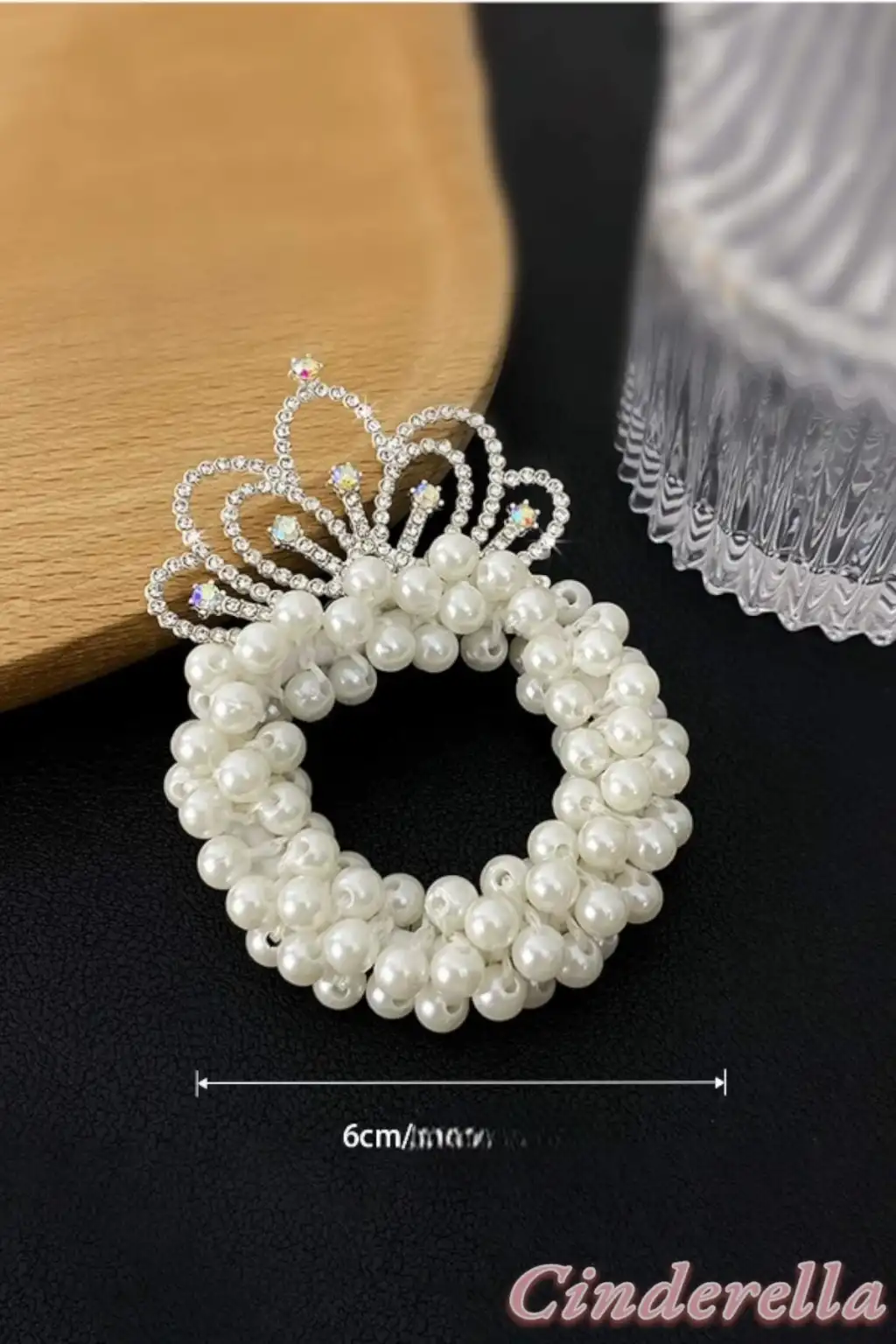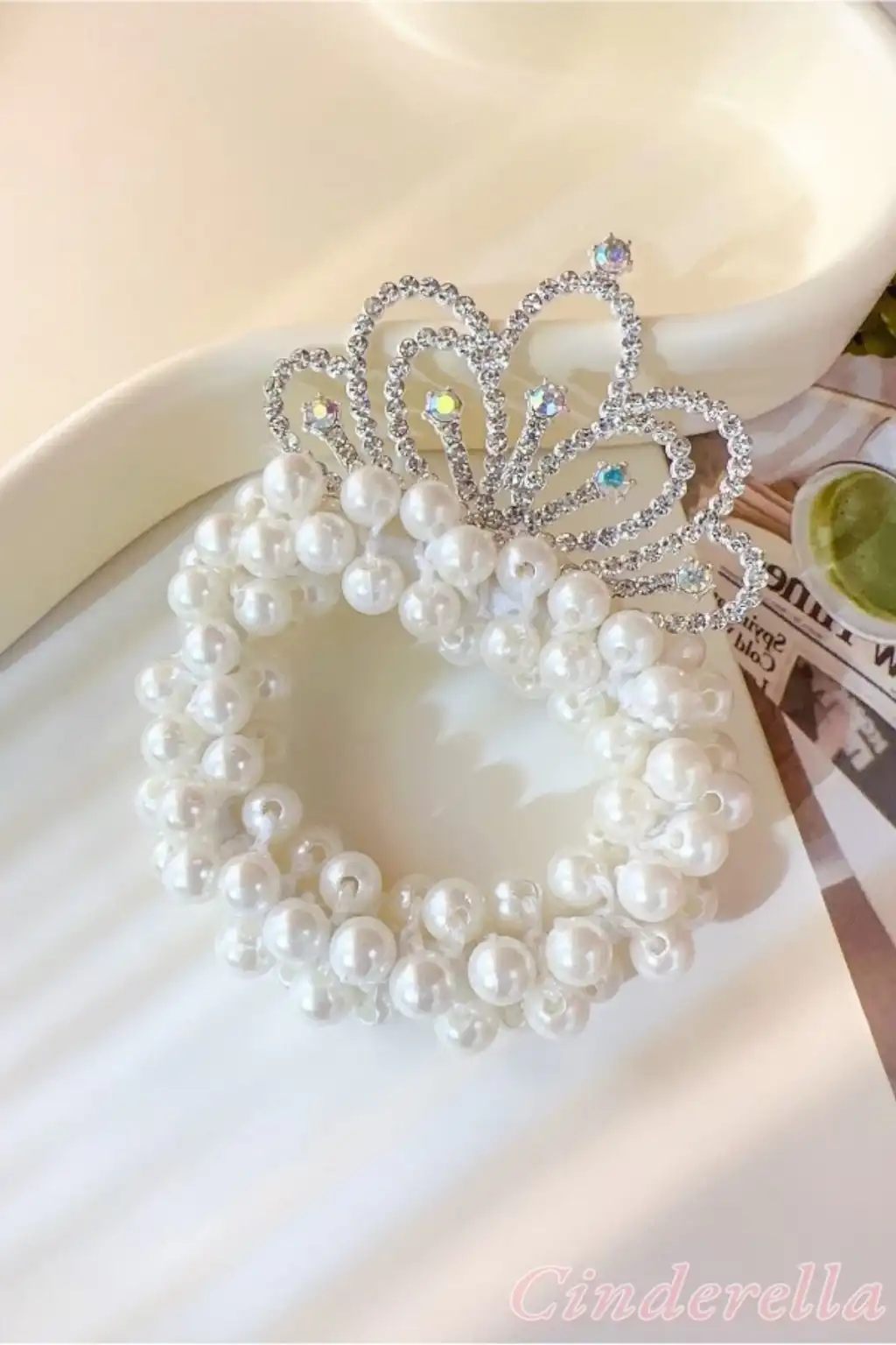 Yeni Trend Prenses Taç İncili Lastikli Elastik Topuz Tokası - Kız Çocuk Zarif Şık Doğum Günü Tokası