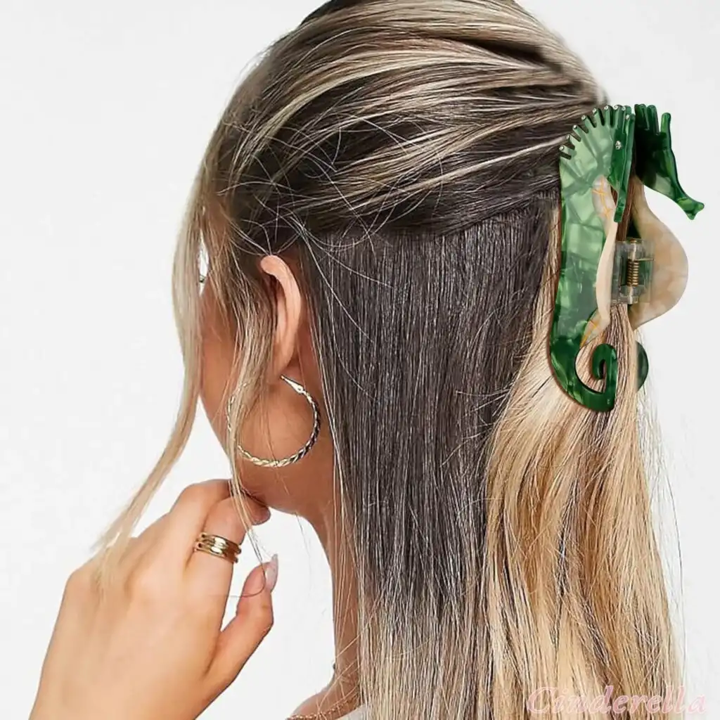 Yeşil Denizatı Model Lüks Asetat Kemik Büyük Mandal Toka 11cm - Yeni Sezon Kadın Mandallı Saç Tokası