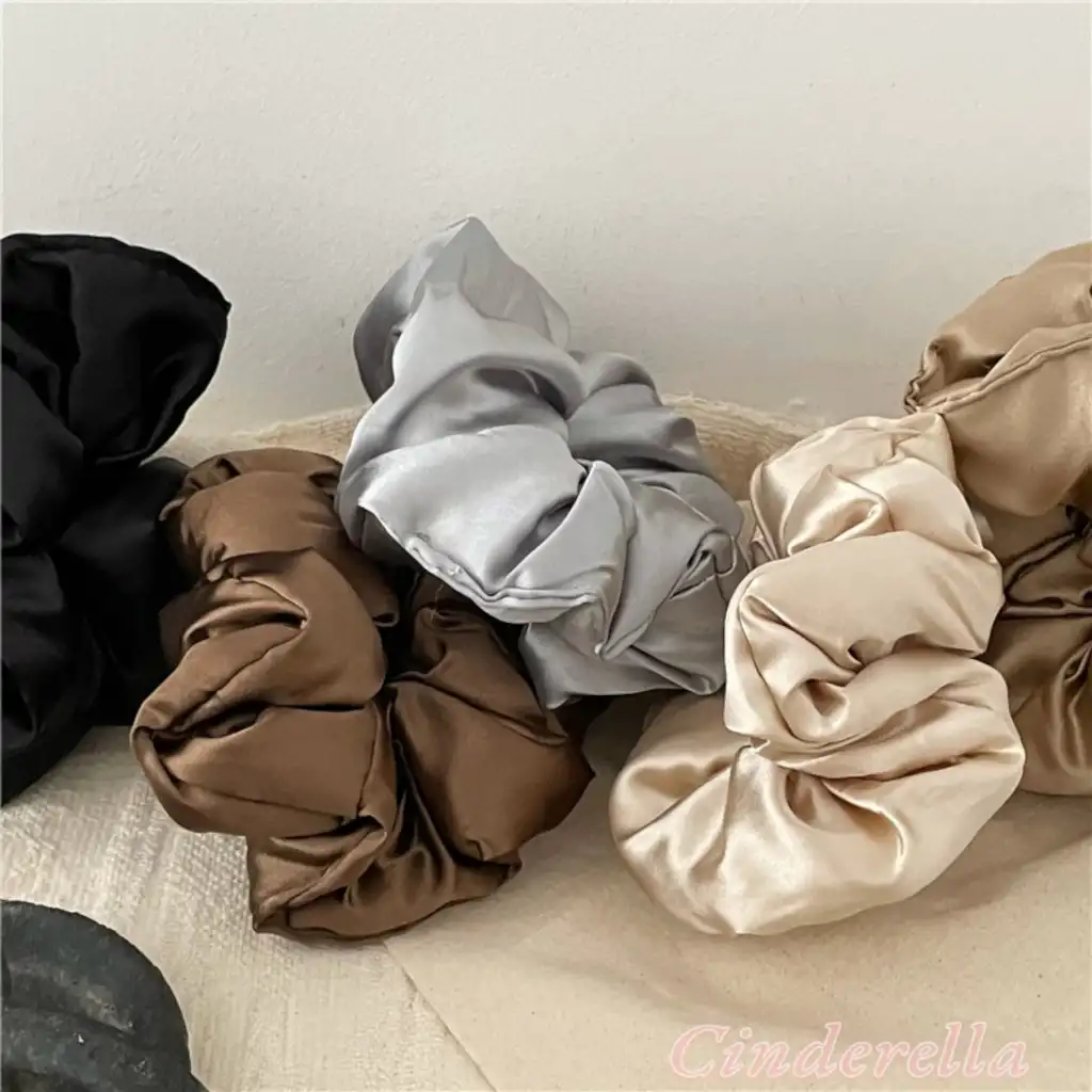 Yumuşak Saten Büyük Boy Pillow Scrunchie Toka Bej - Rahat Geniş Esnek Simit Lastikli Saç Tokası