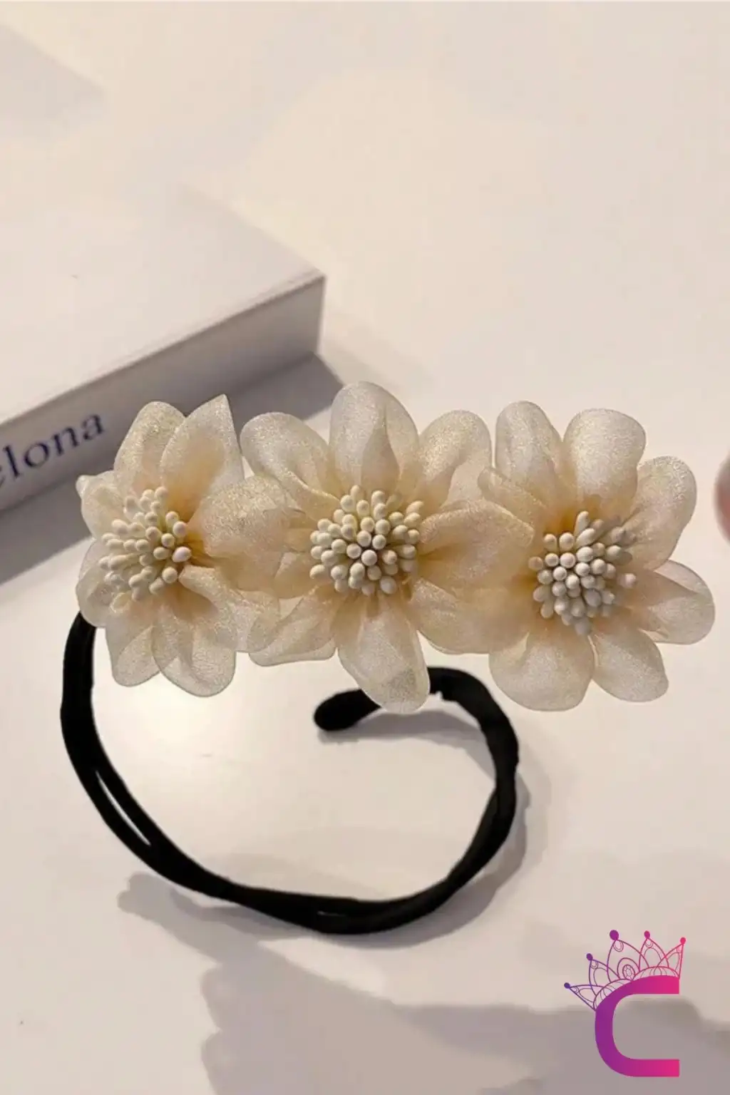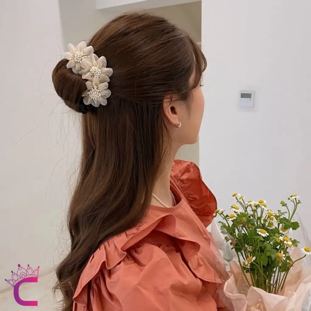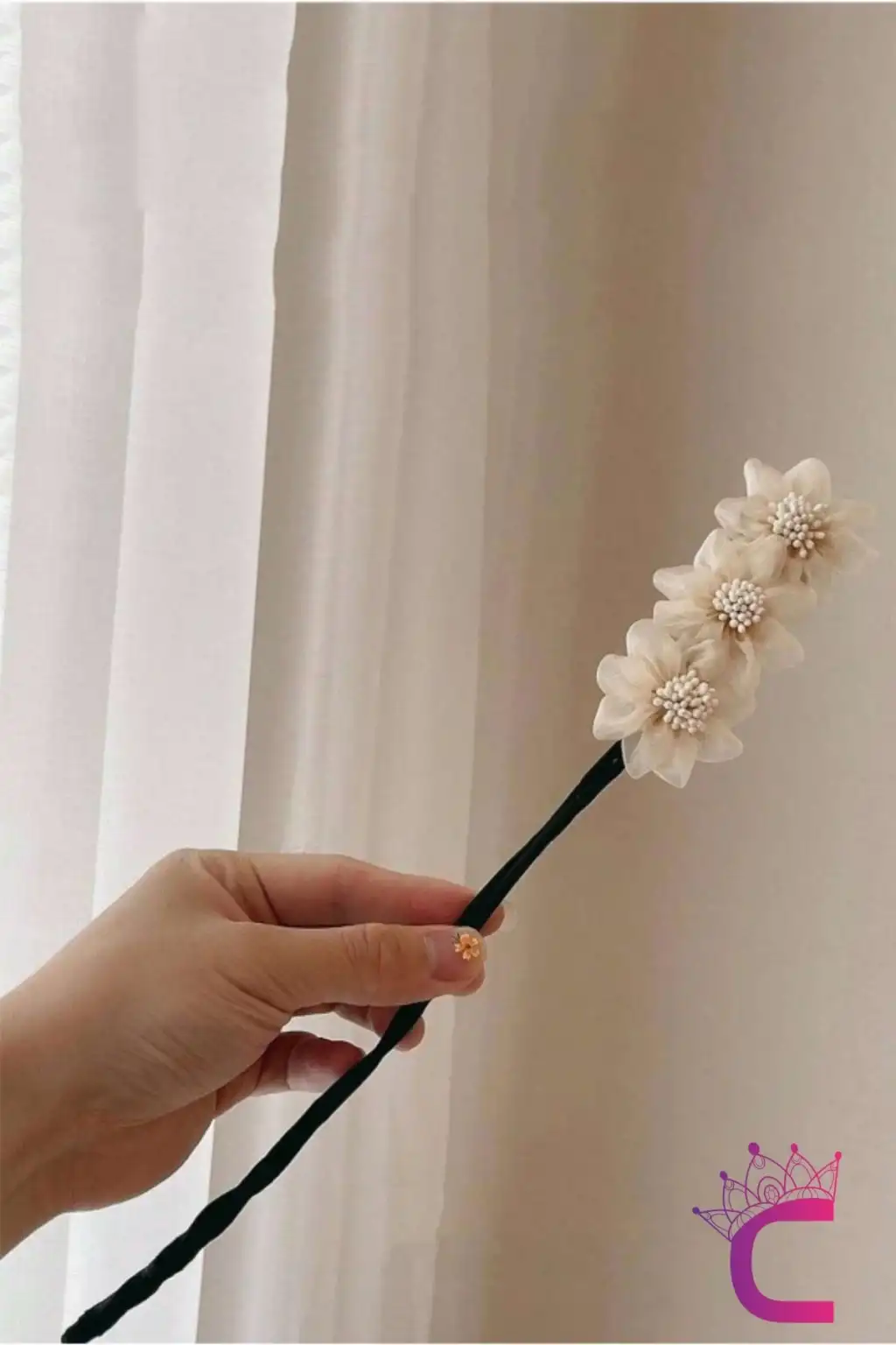 Zarif Chiffon Çiçekli Kadın Kolay Telli Saç Topuz Tokası Beyaz- Günlük Söz Nişan Düğün Saç Aksesuarı