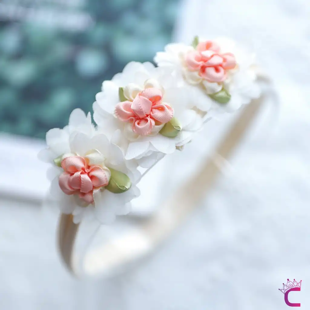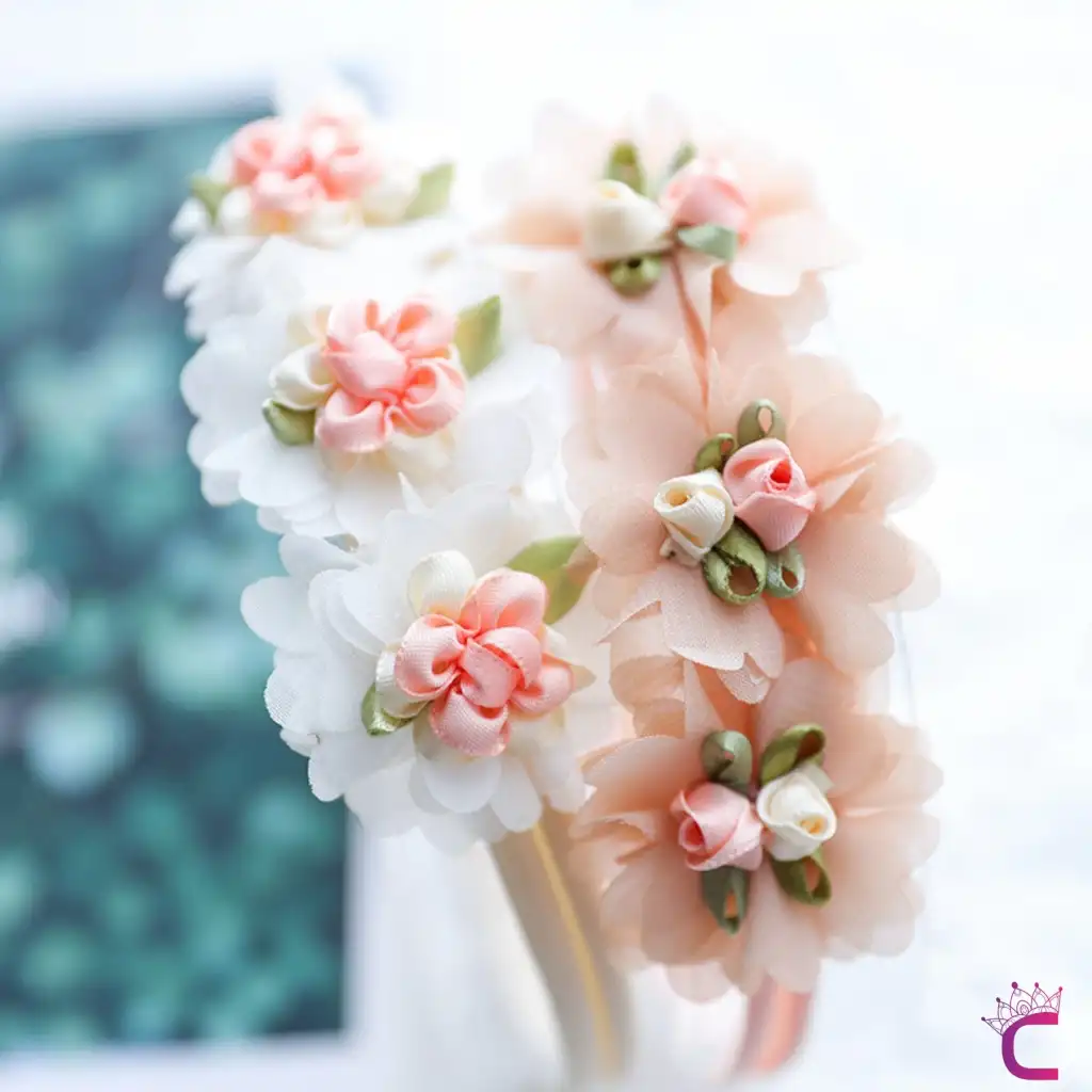 Zarif Çiçekli Yumuşak Kız Bebek Bandana Krem Beyaz Tonlu - Hediyelik Doğum Günü Tokası Saç Bandı