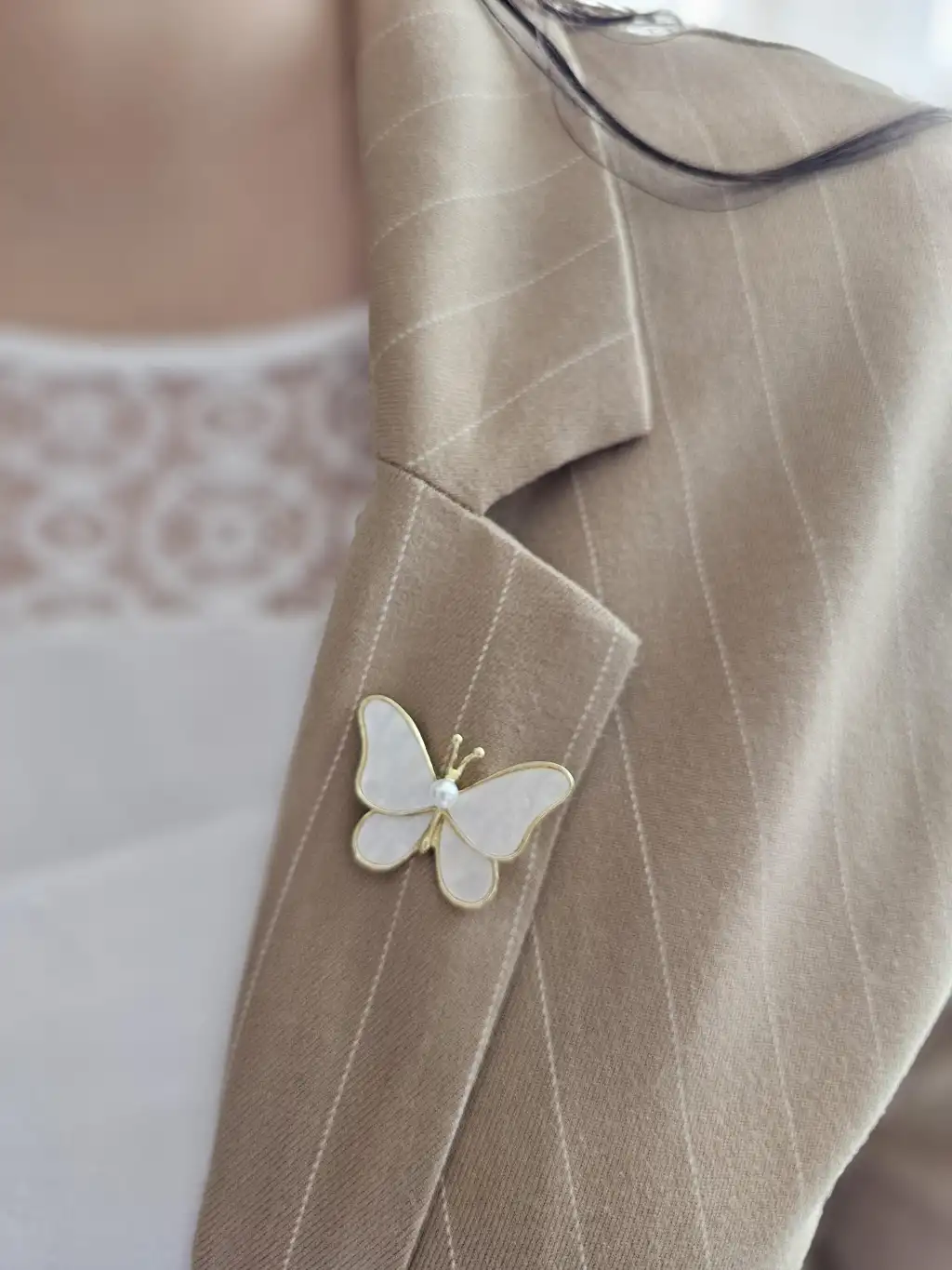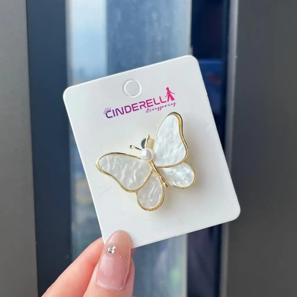 Zarif İncili Taşlı Beyaz Kanatlı Kadın Kelebekli Broş - Arkadaş Hediyesi Yaka İğnesi Rozet