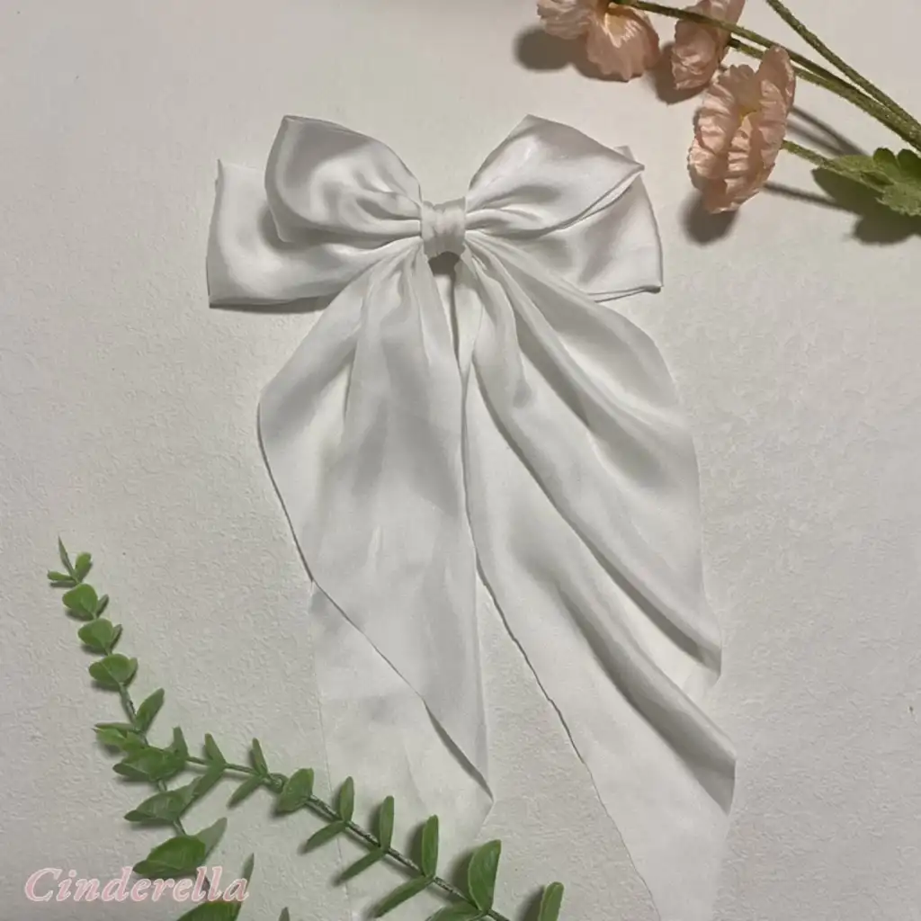 Zarif Kadın Saten Büyük Fiyonk Otomatik Toka Beyaz - Kurdele Fiyonklu Klipsli Saç Tokası
