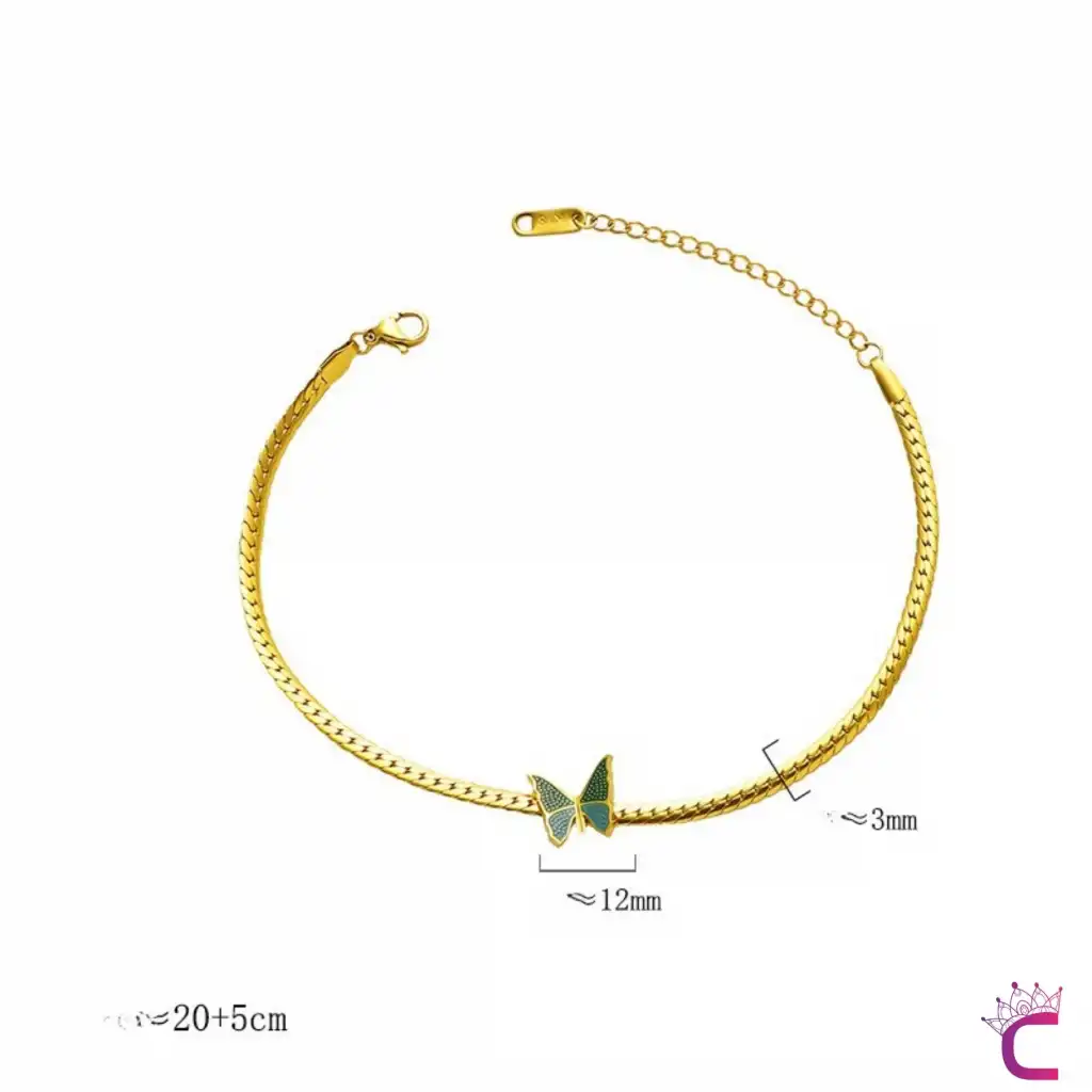 Zarif Kelebekli Gold Zincirli Paslanmaz Çelik Kadın Halhal - Hediyelik Aksesuar Bijuteri Takı