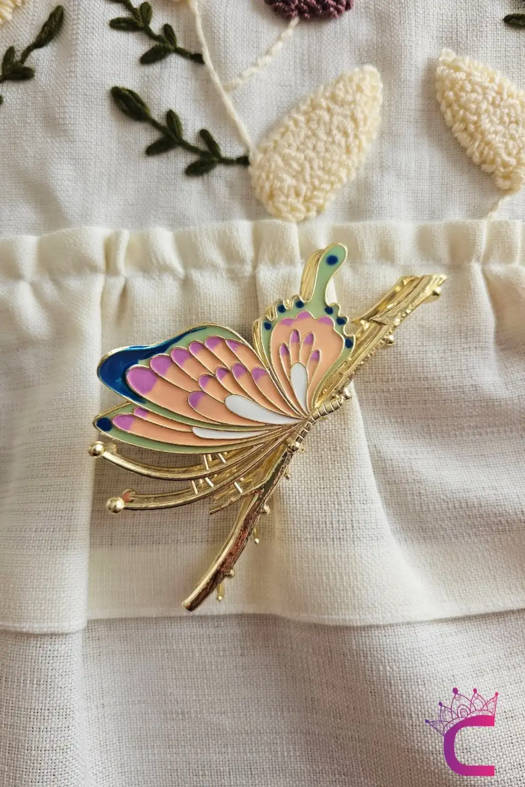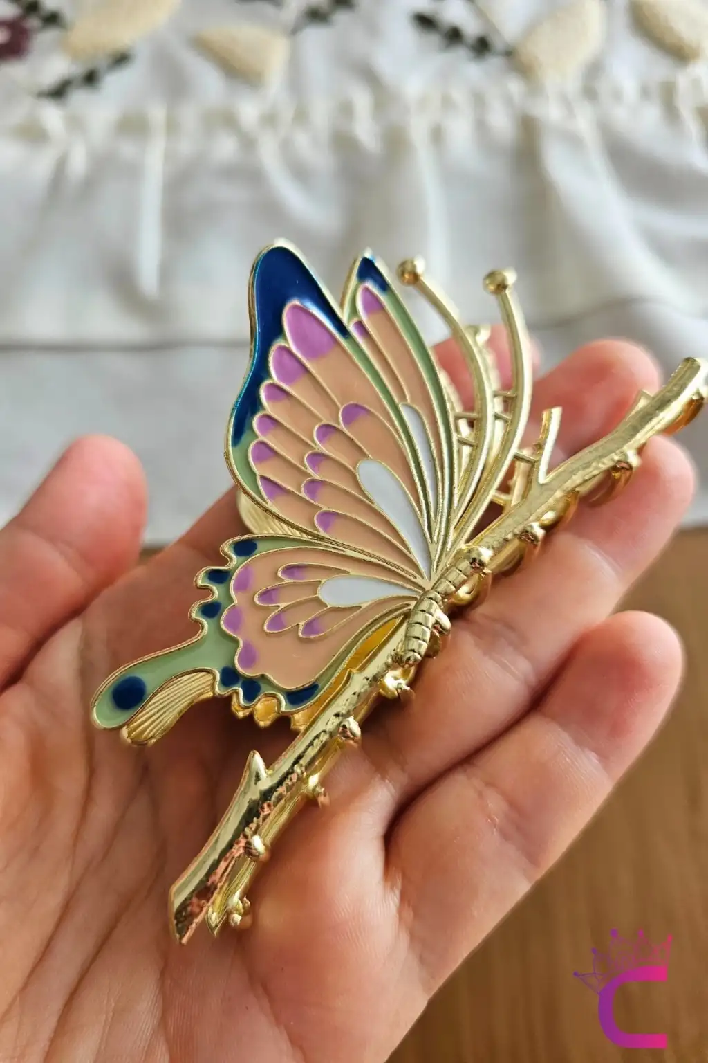 Zarif Mineli Kelebek Metal Kadın Mandal Toka 11cm - Kelebekli Mandallı Saç Topuz Tokası Hediyelik