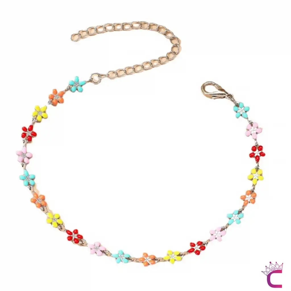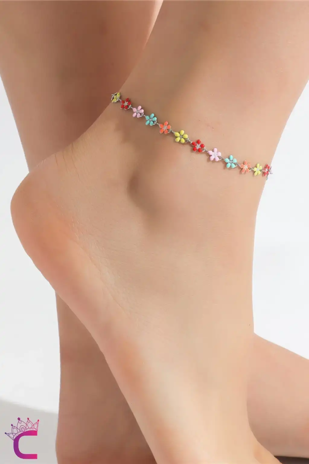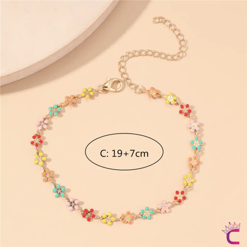 Zarif Mini Çiçek Dekor Renkli Kadın Halhal - Yaz Deniz Kombini Ayarlanabilir Bijuteri Halhal