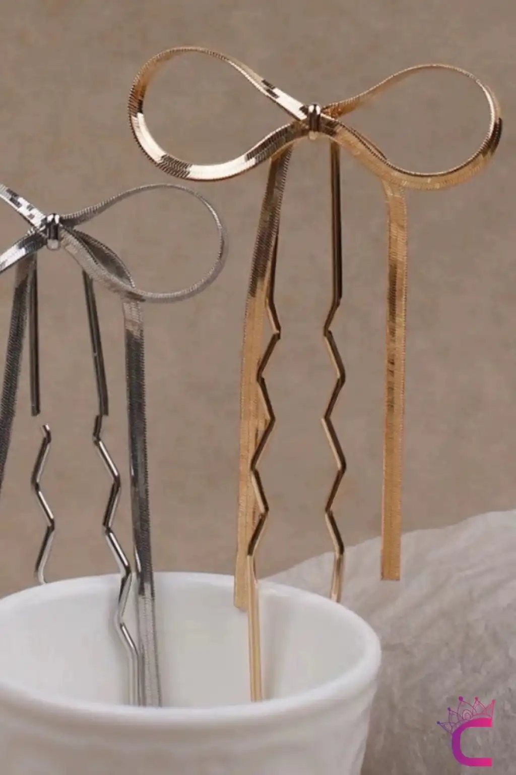 Zarif Sallantılı Kurdeleli Fiyonklu Kadın Gold Metal Firkete Topuz Tokası - Sevgiliye Hediyelik Toka