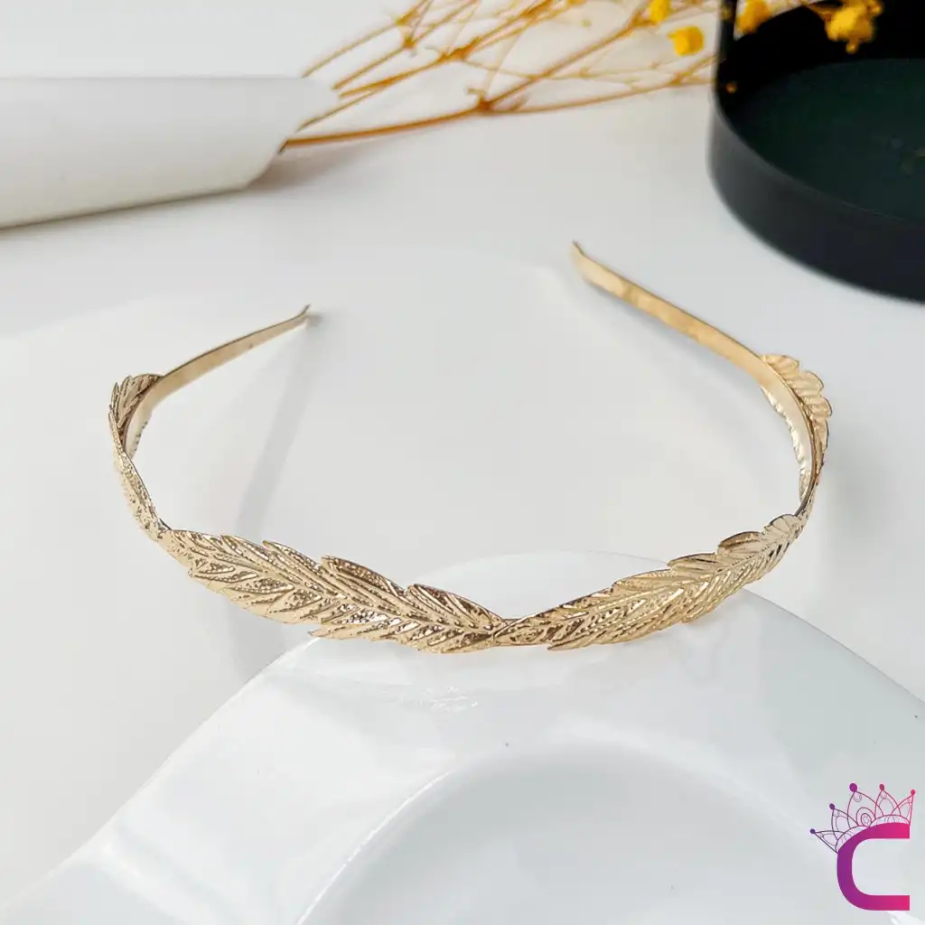 Zarif Yaprak Tasarım Gelin Tacı Gold Renk - Düğün Nişan Nikah Söz Doğum Günü Kadın Taç Saç Bandı