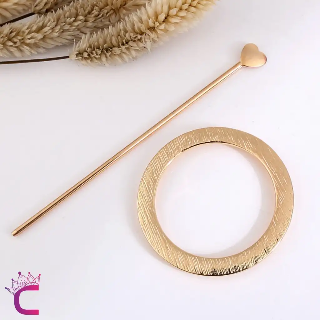 Zarif Yuvarlak Kalpli Çubuk Tasarım Kadın Gold Metal Topuz Tokası - Topuz Toka Çubuk Toka Saç Çubuğu